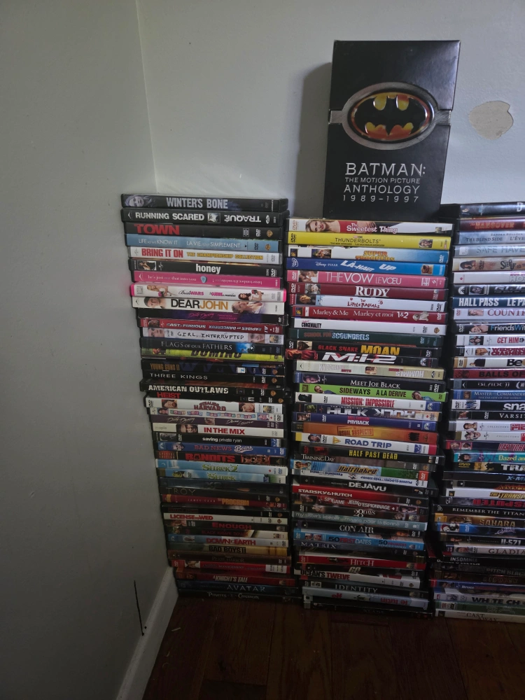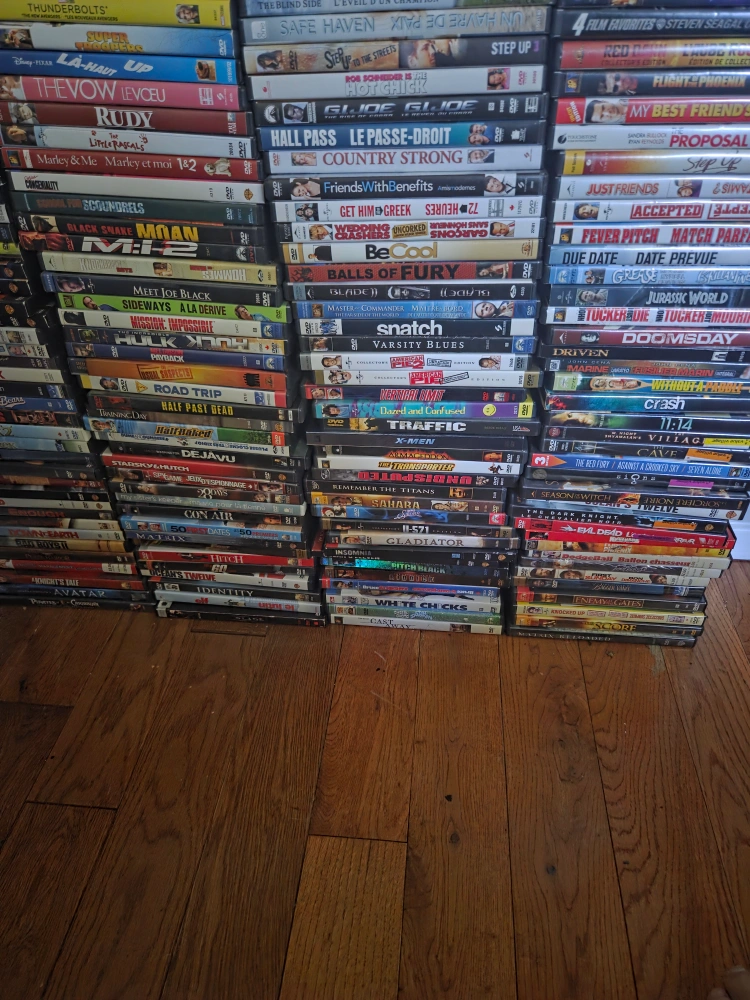 Selling a large collection of DVDs! Titles include a wide variety of genres. Great for movie nights or expanding your collection comes with dvd player as well. can deliver cash only.