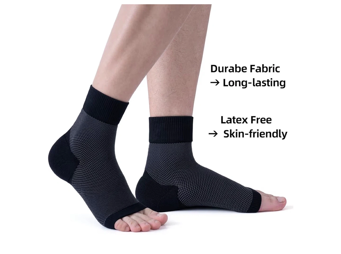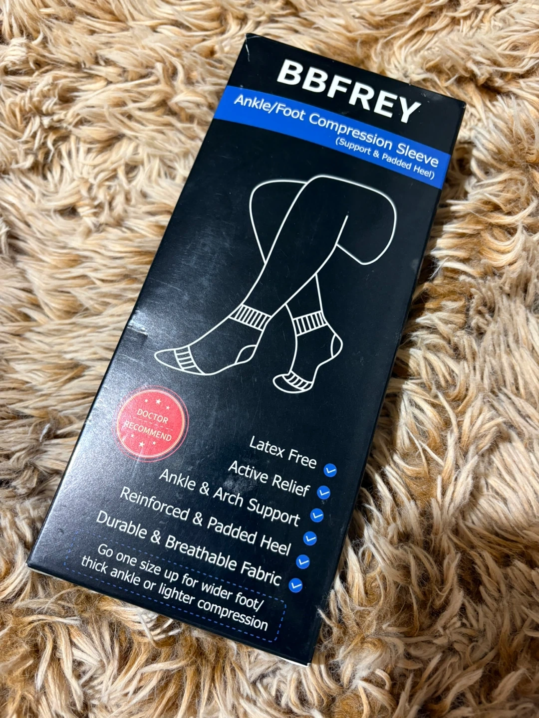 This BBfrey ankle and foot compression sleeve offers support and active relief. It's made with durable and breathable fabric and features a reinforced, padded heel. Designed for ankle and arch support, it's latex-free and skin-friendly. Great for relieving foot pain and improving circulation!