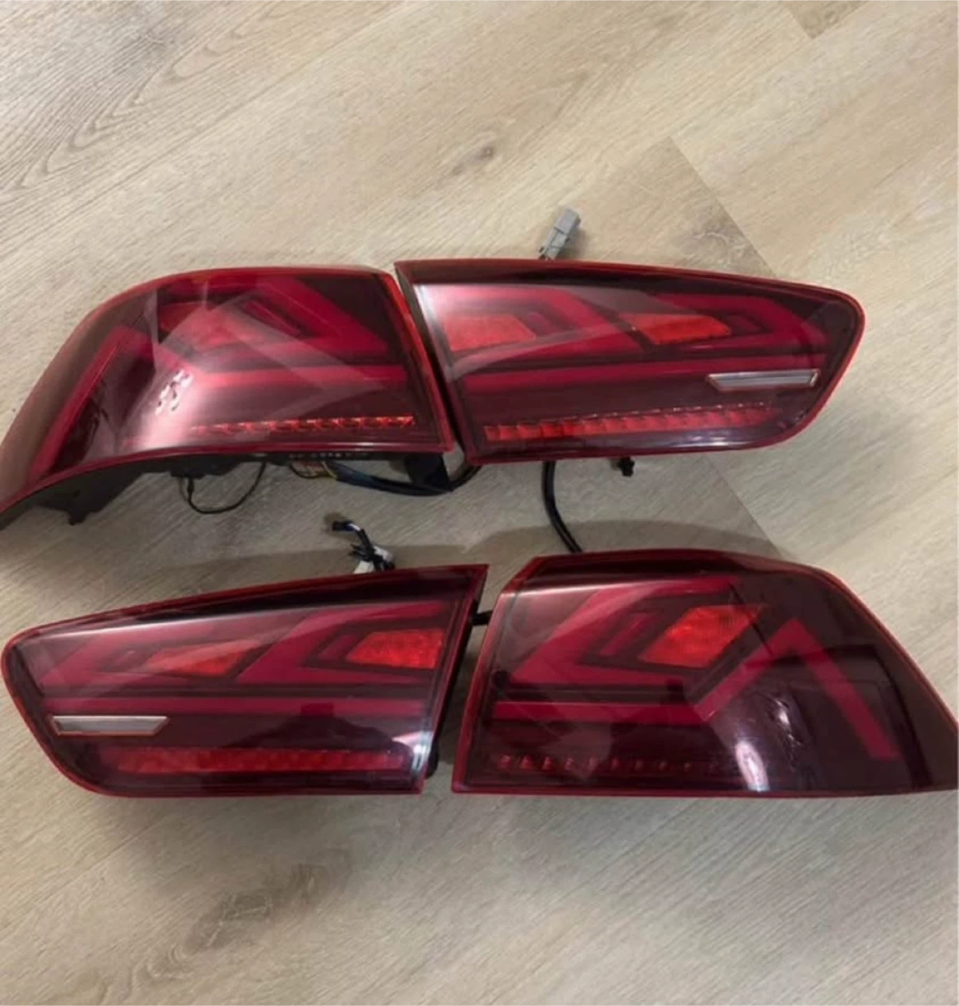 Set of four LED tail lights for a Mitsubishi Lancer EX. These lights feature a distinctive red lens with integrated LED running lights and turn signals. Ready for installation on your vehicle.