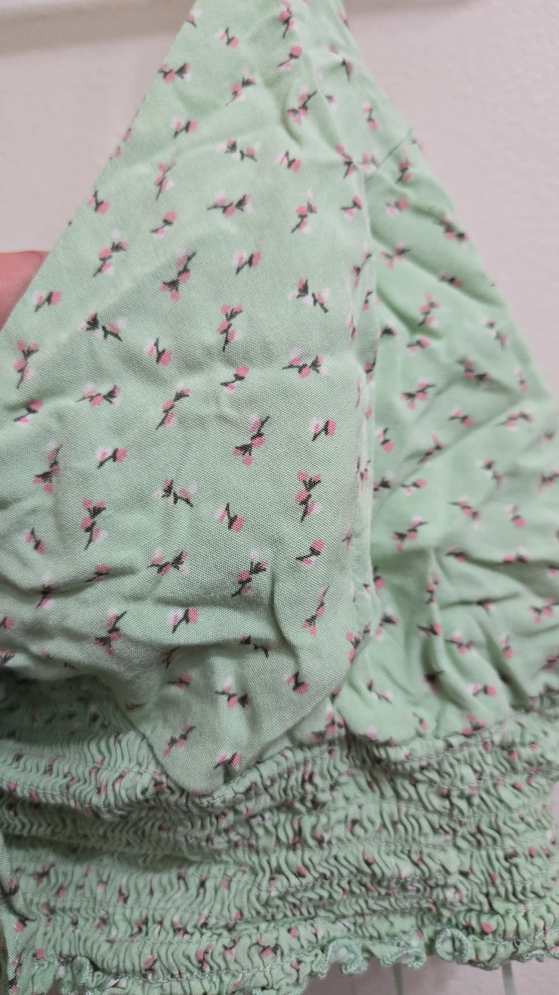 Aeropostale Green Floral Smocked Crop Top XL