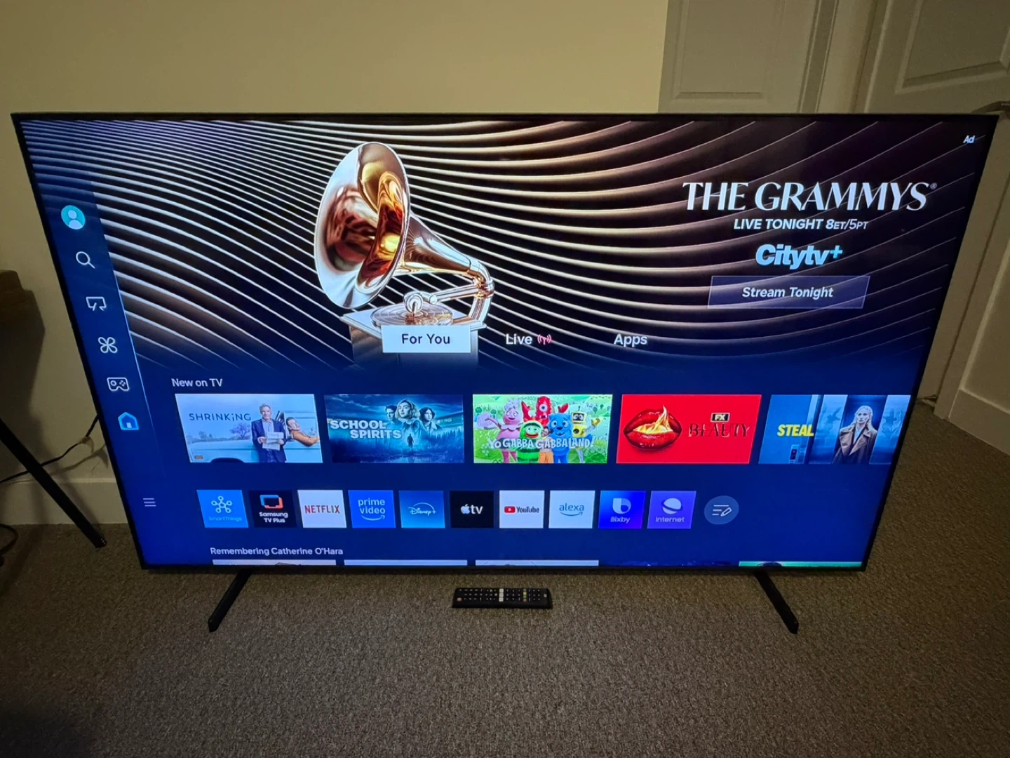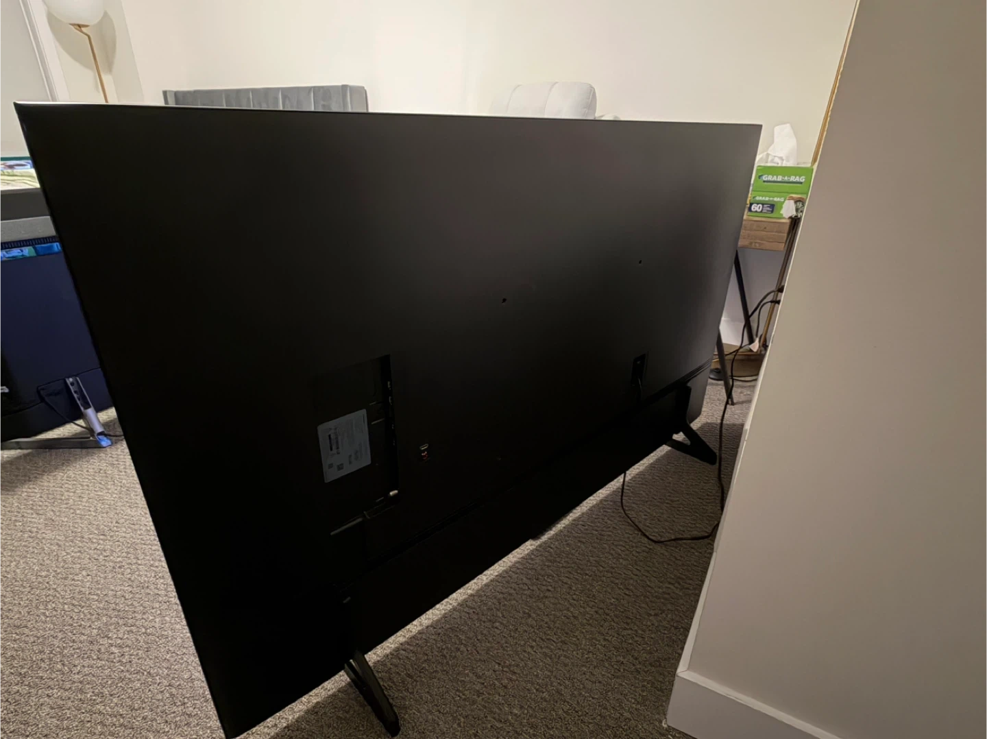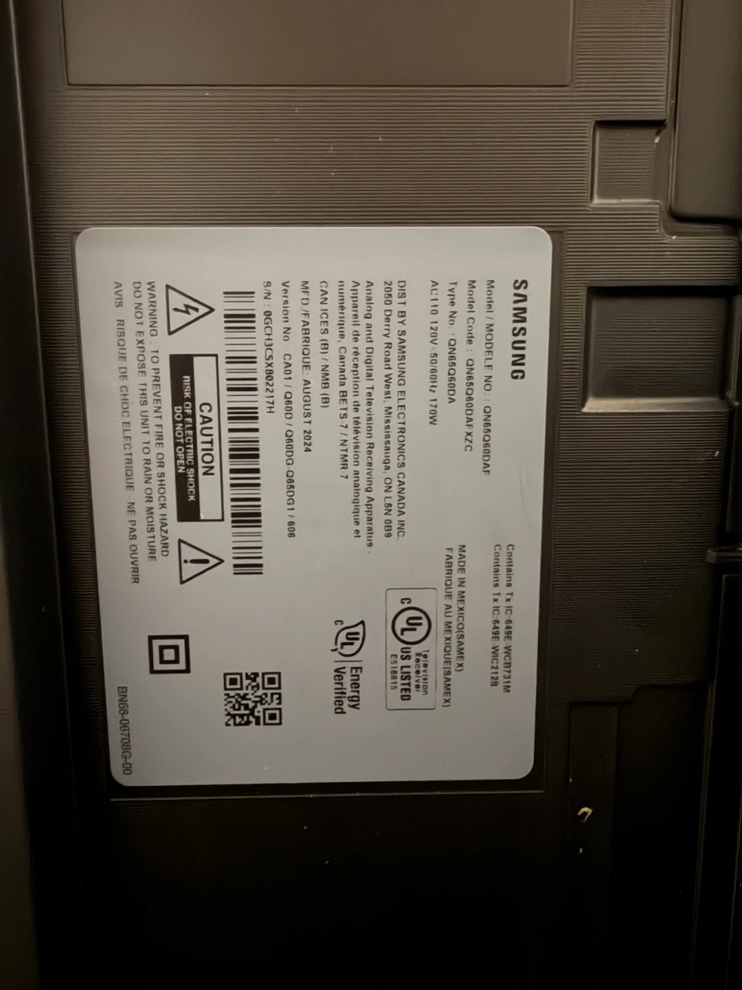 This is a Samsung 65-inch QLED 4K Smart TV. It supports analog and digital tuners and has multiple inputs. Manufactured in August 2024, it's a great addition to any entertainment setup. It comes with its original stand.