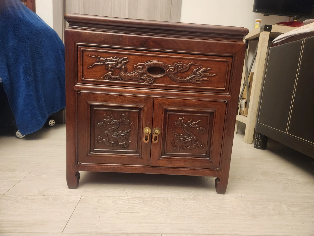 Chinese Vintage Side Table with Drawer and Shelf.
