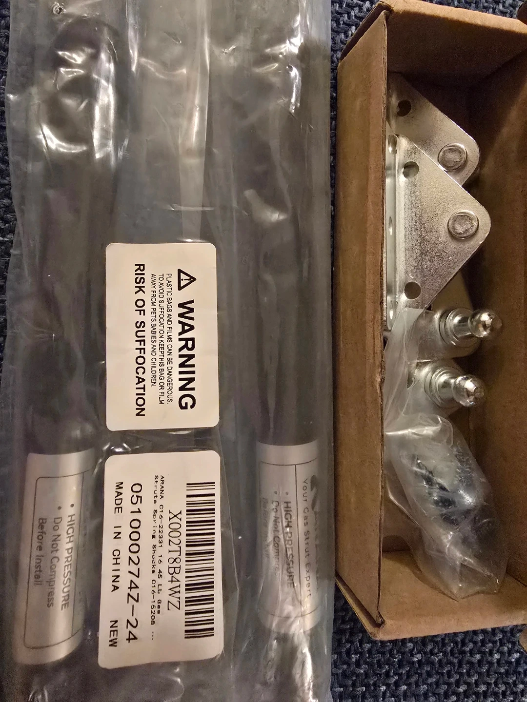 Brand new ARANA gas struts, 16 inches long with a 45lb lift support Including mounting hardware.