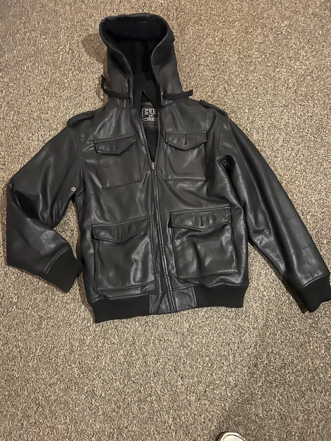 CSG Black Faux Leather Bomber Jacket Size M