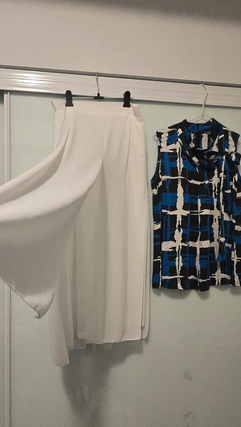 The white pants are made of a light, breathable fabric and are very beautiful.