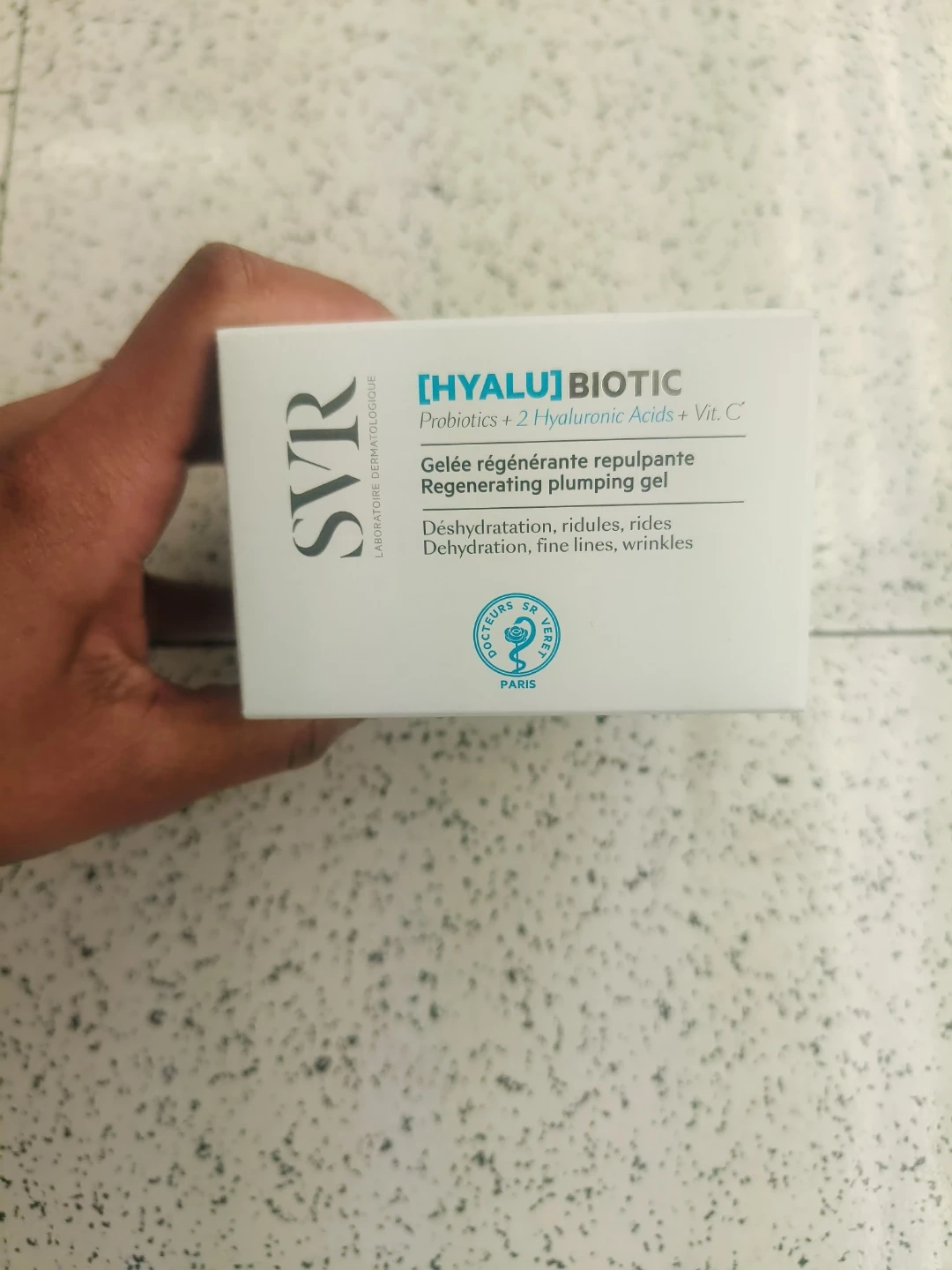 I'm selling a SVR HYALU Biotic Regenerating Plumping Gel! This gel contains probiotics, hyaluronic acids, and vitamin C. It helps with dehydration, fine lines, and wrinkles. It's a great way to keep your skin looking its best!