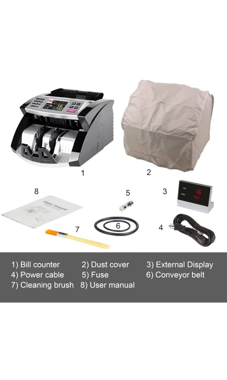 ⭐ 【PACKAGING】*Bill Counter Machine, *Power cable, * Cleaning Brush, * External display, * Spare Fuse, * User manual, *Conveyor belt, *Dust Cover