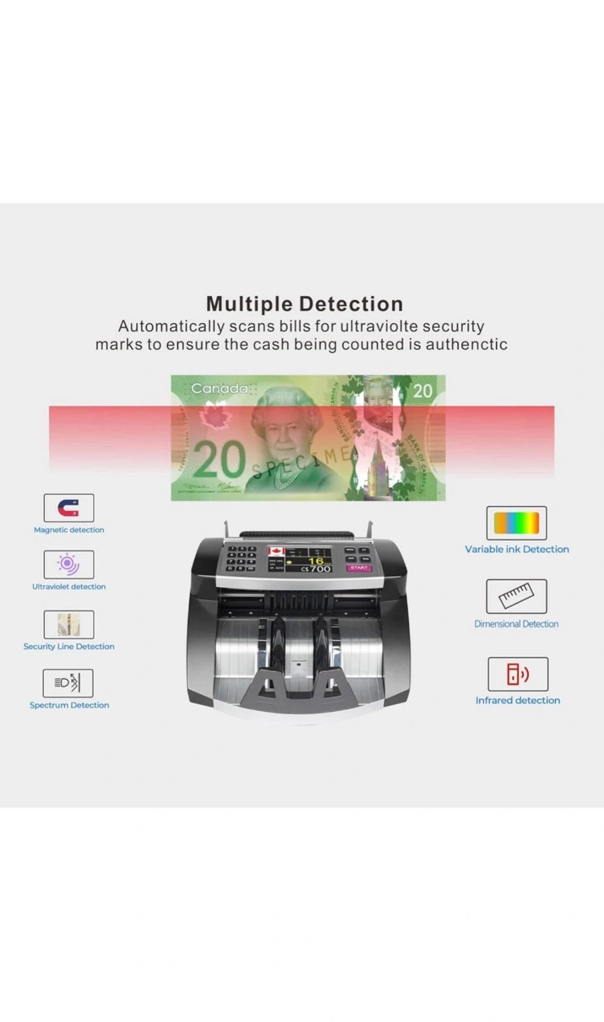 ⭐【MULTIPLE FUNCTIONS】For Canadian dollars: Mixed Denomination Mode/Sort Mode/Count Mode/Detect Mode; For US Dollar, EURO, and others: /Count Mode/Detect Mode