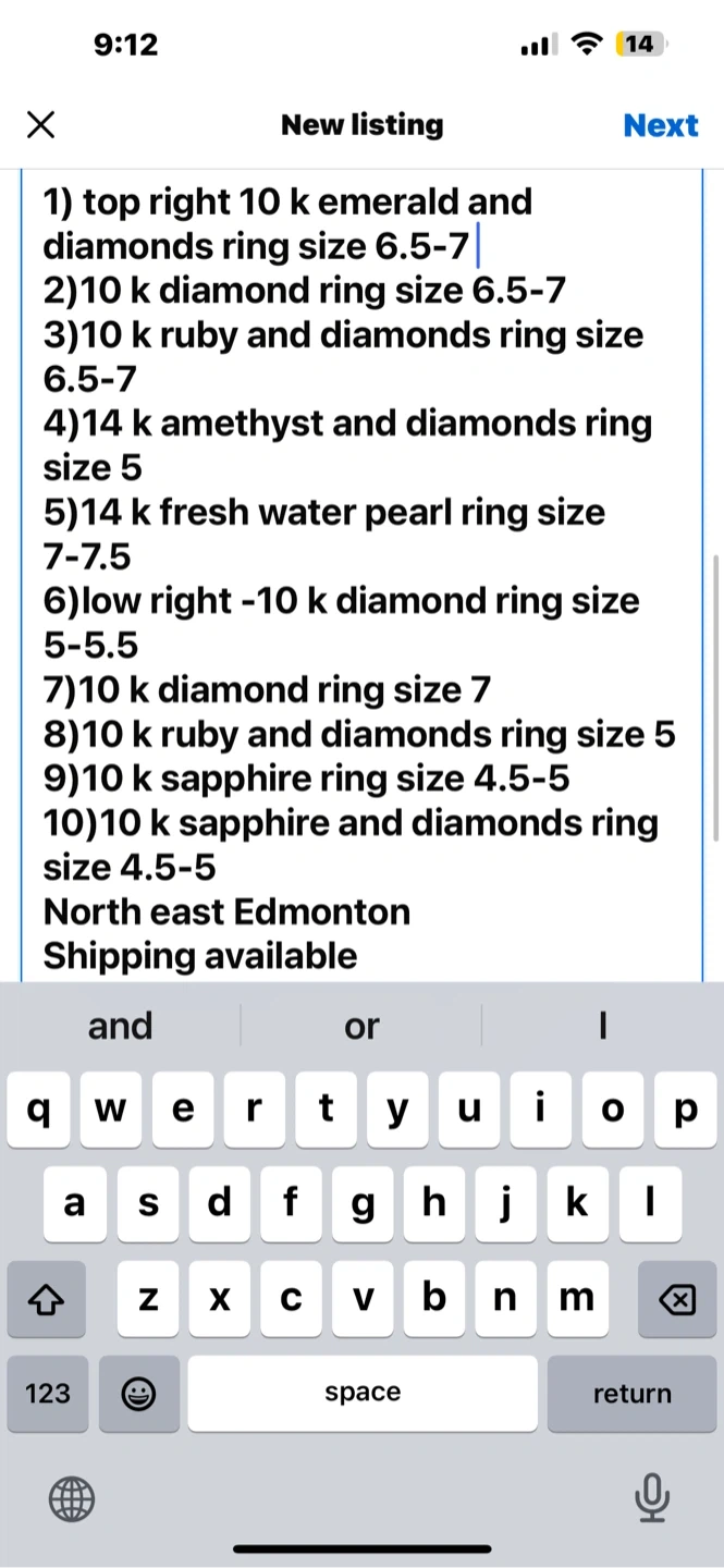 10k and 14k Rings -250 dollars each