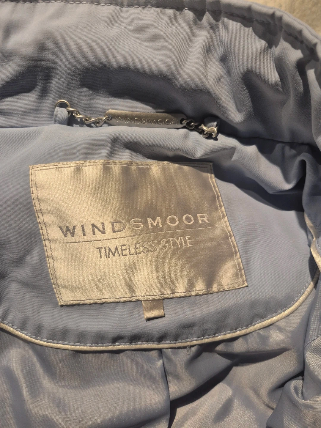 This is a light blue Windsmoor coat with a timeless style. It's perfect for layering and adding a touch of elegance to your outfit. The coat is in great condition and ready for a new owner!
