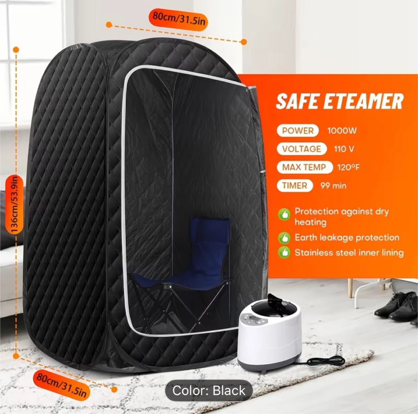 Portable Steam Sauna Tent Kit with Steamer - Black
