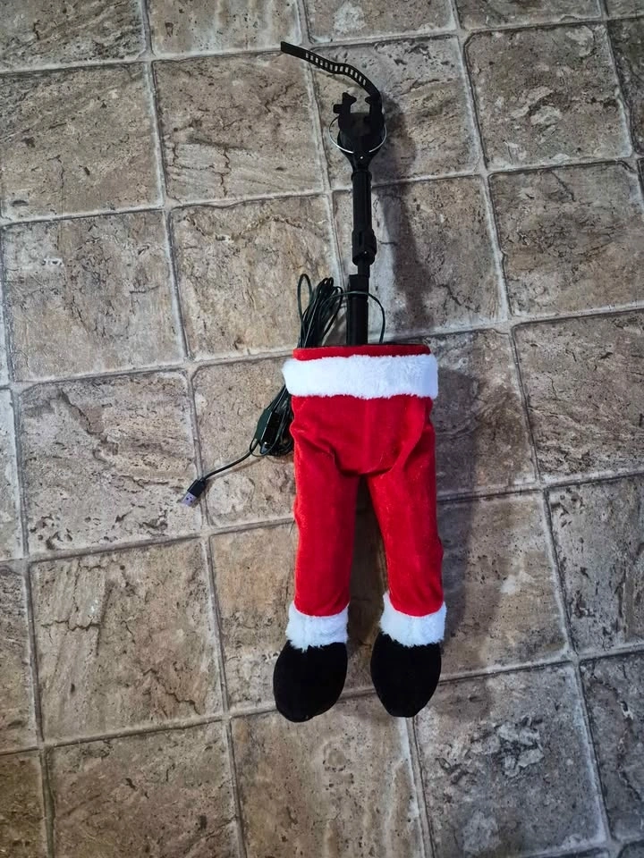 Fun Christmas Santa decoration. Red with white trim and black boots. Comes with a matching Christmas tree stand cover or leg warmer. Pickup in Cochrane. Cash only.