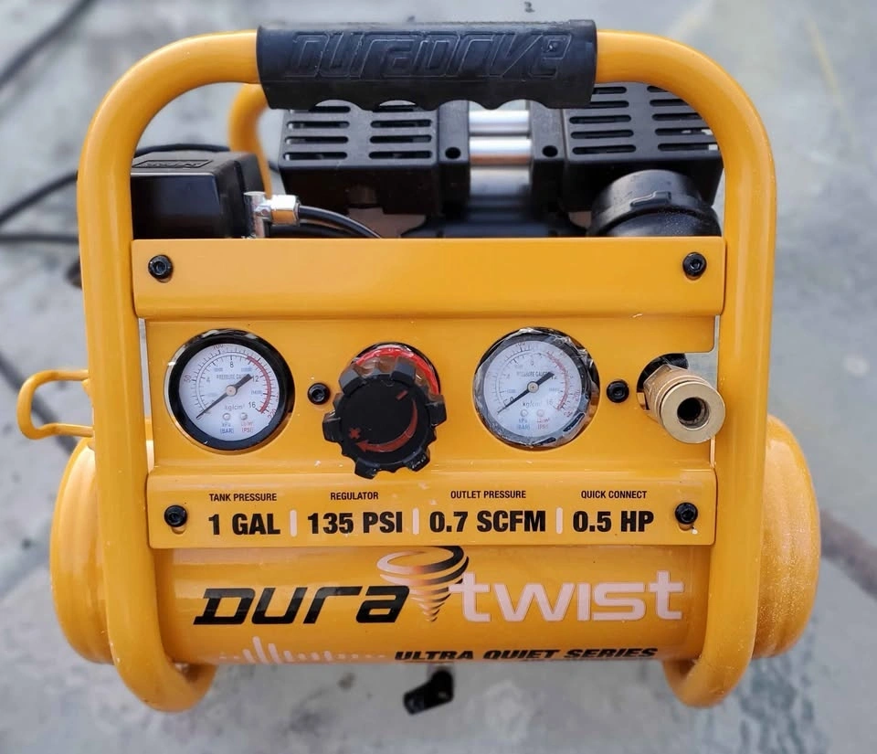 New DuraTwist 1-Gallon 0.5 HP Ultra-Quiet Portable Oil-Free Electric Air Compressor.