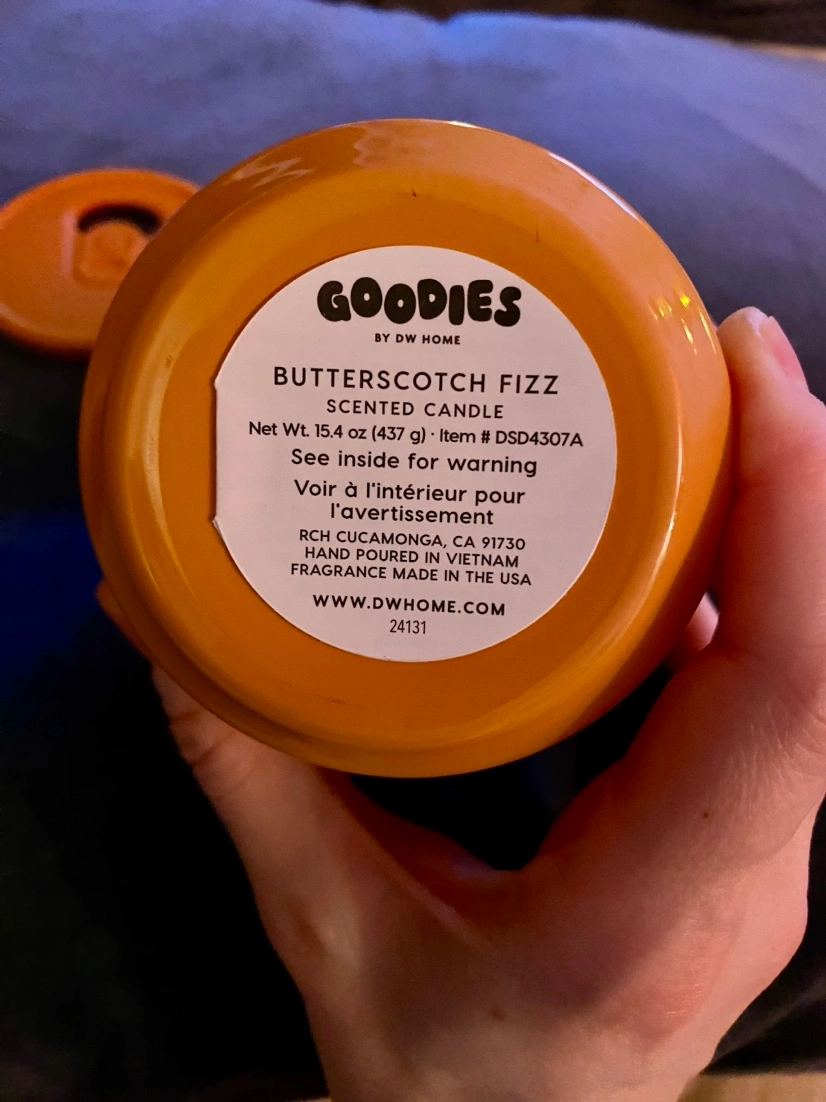 280You wont need a letter or a theme park ticket to enjoy this magical butterscotch scent, but you can pretend you are sitting in a quiant magical pub on a crisp autumn day with this Butterscotch Fizz. Notes: apple, blushed quince, swirls of creamy caramel, buttered rum, sweet butterscotch, a touch of warm spice and savory sea salt. Glass can vessel w/ silicone lid Large Single Wick Burn Time: Approx. 33 hours | Dimensions: 3.13" x 5.7" | Fill Weight: 15.0oz | 437g Weight: 2.5 lbs
