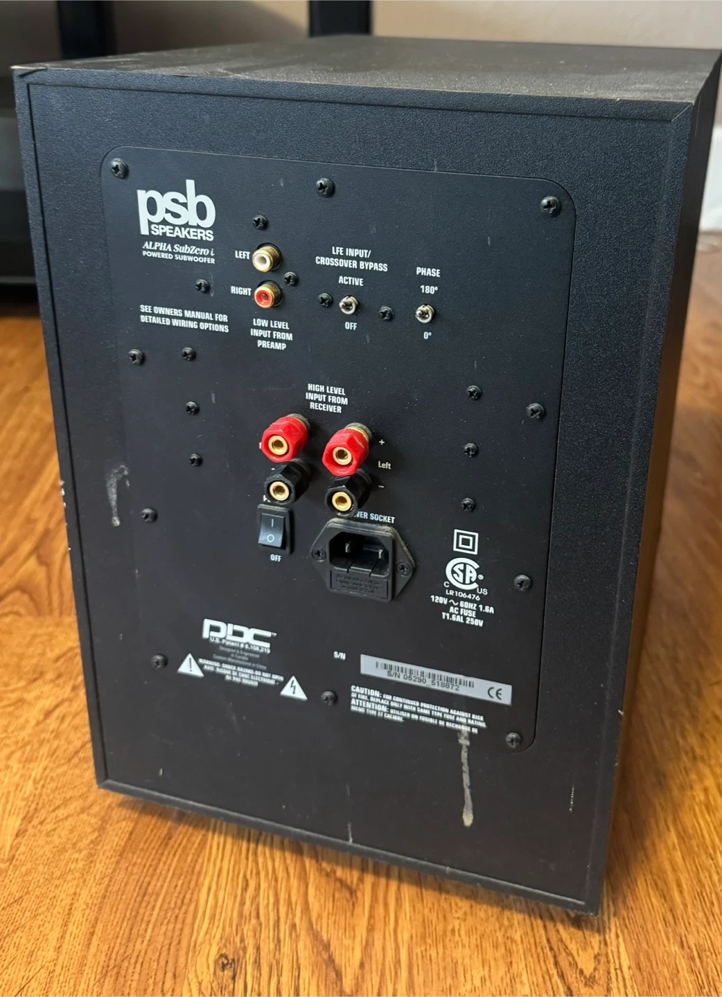 Selling a PSB Alpha SubZero i powered subwoofer! It's in great shape and ready to boost your sound system. Perfect for adding that extra depth to your music or movies