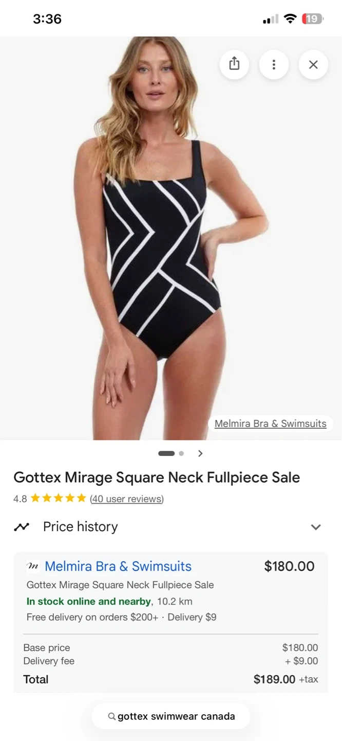 Selling a luxury swimsuit from Gottex in a beautiful navy blue colour with white stripes! It's a size 10 (US). Highly rated at 4.8 stars! Padded with adjustable thick straps, lovely deep back and full bikini area coverage! Build quality and materials is top notch