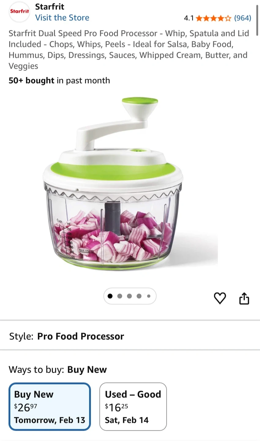 Starfrit Dual Speed Pro Food Processor. It's designed with dual speeds and blades that crush ice.