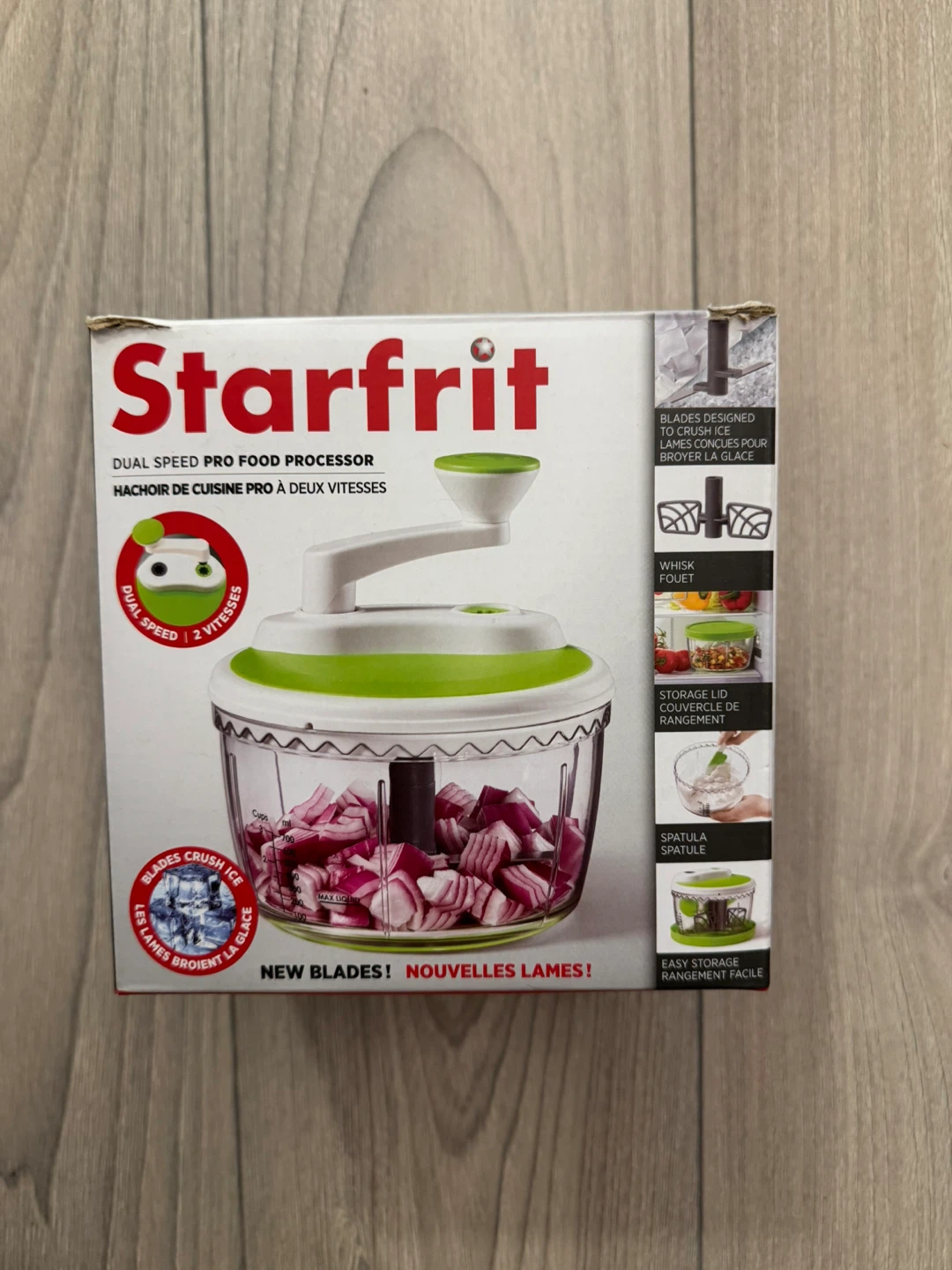 Starfrit Dual Speed Pro Food Processor. It's designed with dual speeds and blades that crush ice.
