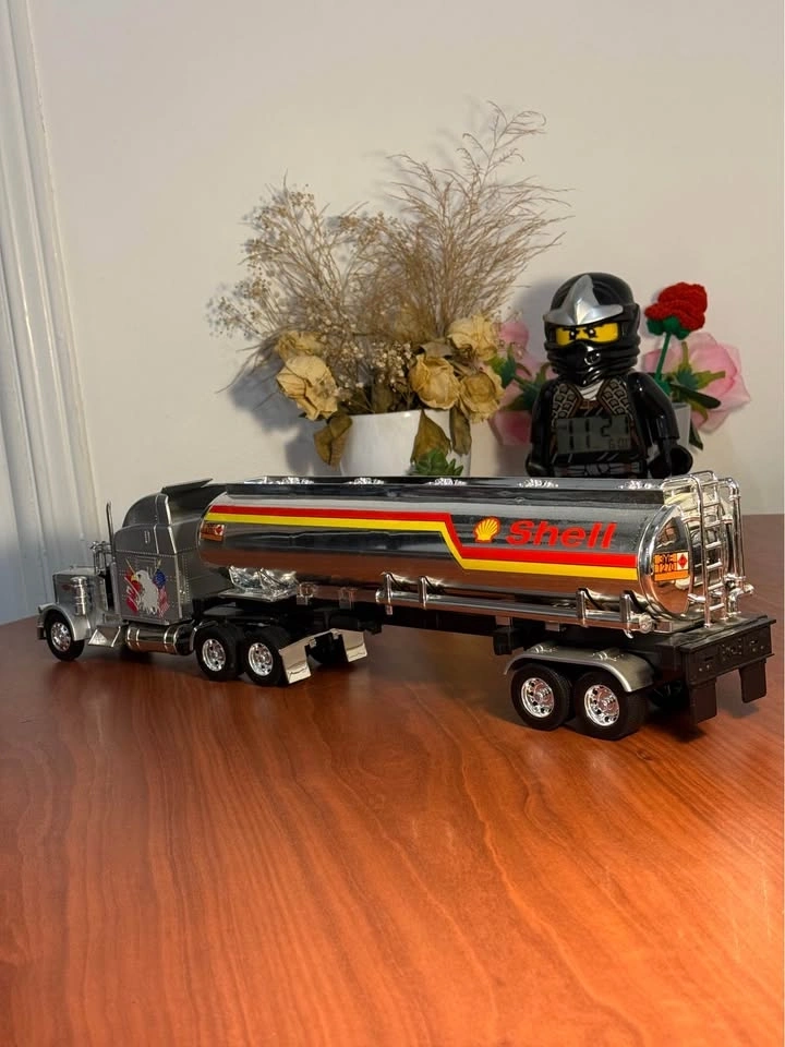 Selling a detailed 1:24 scale Peterbilt tanker truck diecast model with Shell branding. Features realistic chrome finish, classic Peterbilt design, Shell fuel tanker trailer, rubber tires, and rolling wheels. This model has great presence and looks amazing on a desk or shelf. Perfect for diecast collectors or anyone into trucks. Very good condition – well kept, no major damage. Pickup near Mavis & Eglinton, Mississauga.
