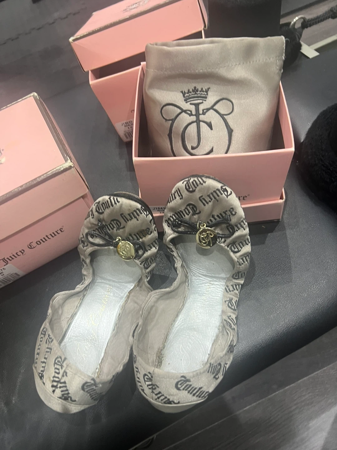 Selling a pair of Juicy Couture ballet flats in size 7. They show some signs of wear, but still have lots of life left! Comes with the original box and dust bag.