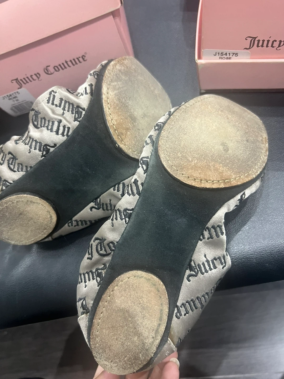 Selling a pair of Juicy Couture ballet flats in size 7. They show some signs of wear, but still have lots of life left! Comes with the original box and dust bag.