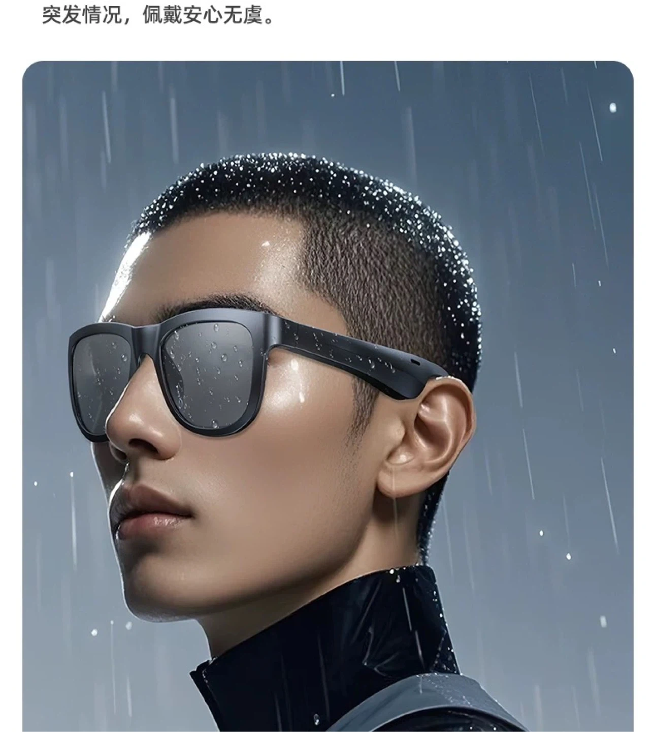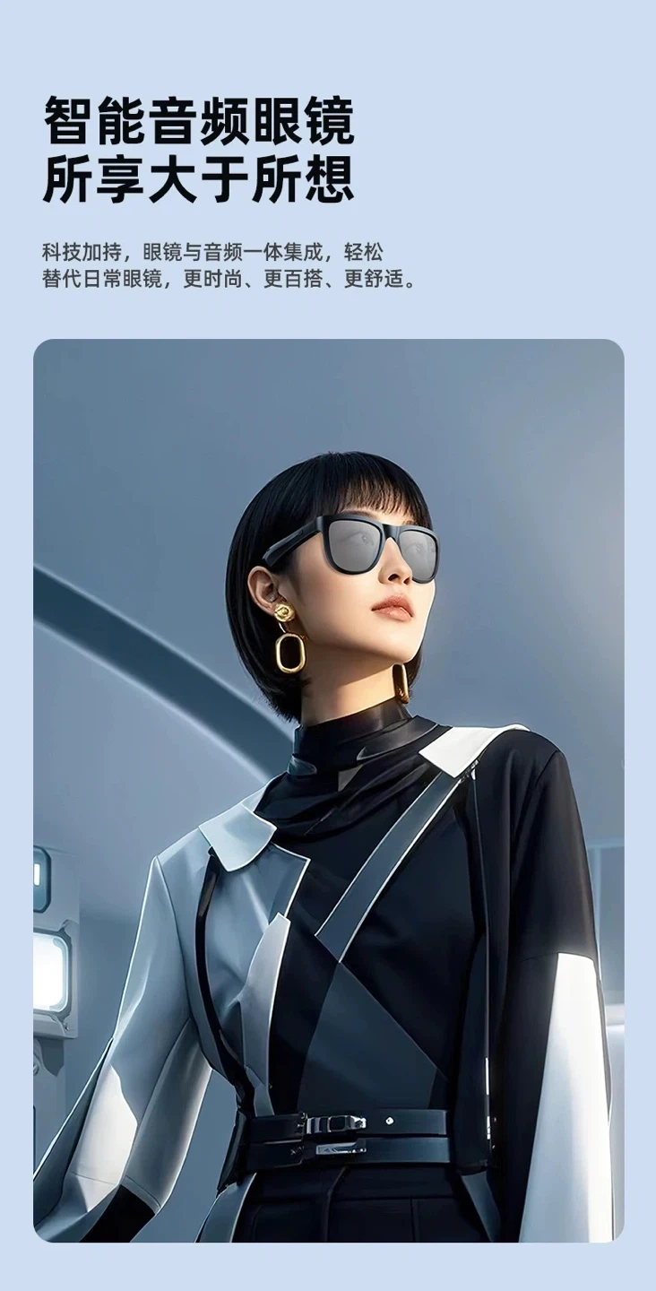 These are smart audio sunglasses with a sleek black frame. They're designed for both fashion and convenience, integrating audio technology seamlessly. Enjoy your music or calls hands-free while protecting your eyes.