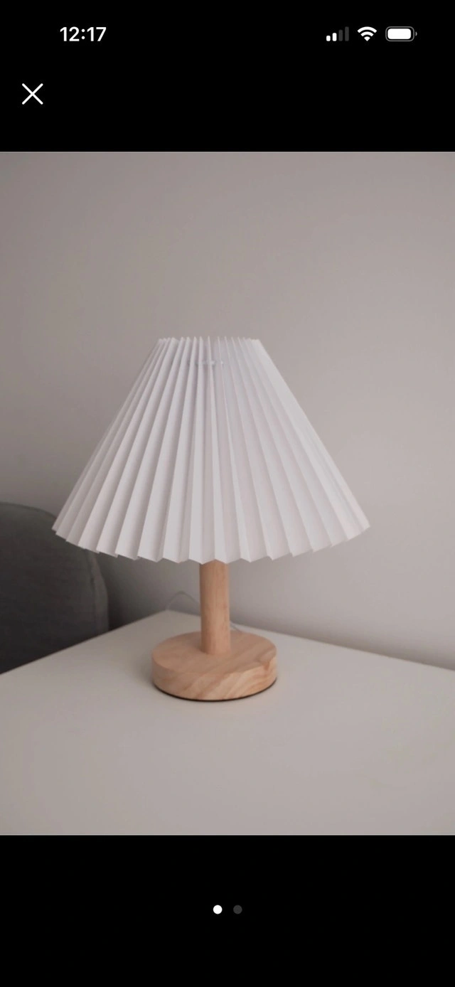 Brighten up any room with this stylish Ikea table lamp! This lamp features a unique pleated shade and adjustable brightness settings, perfect for creating the right ambiance. It's in excellent condition and ready to light up your space. Cash accepted.