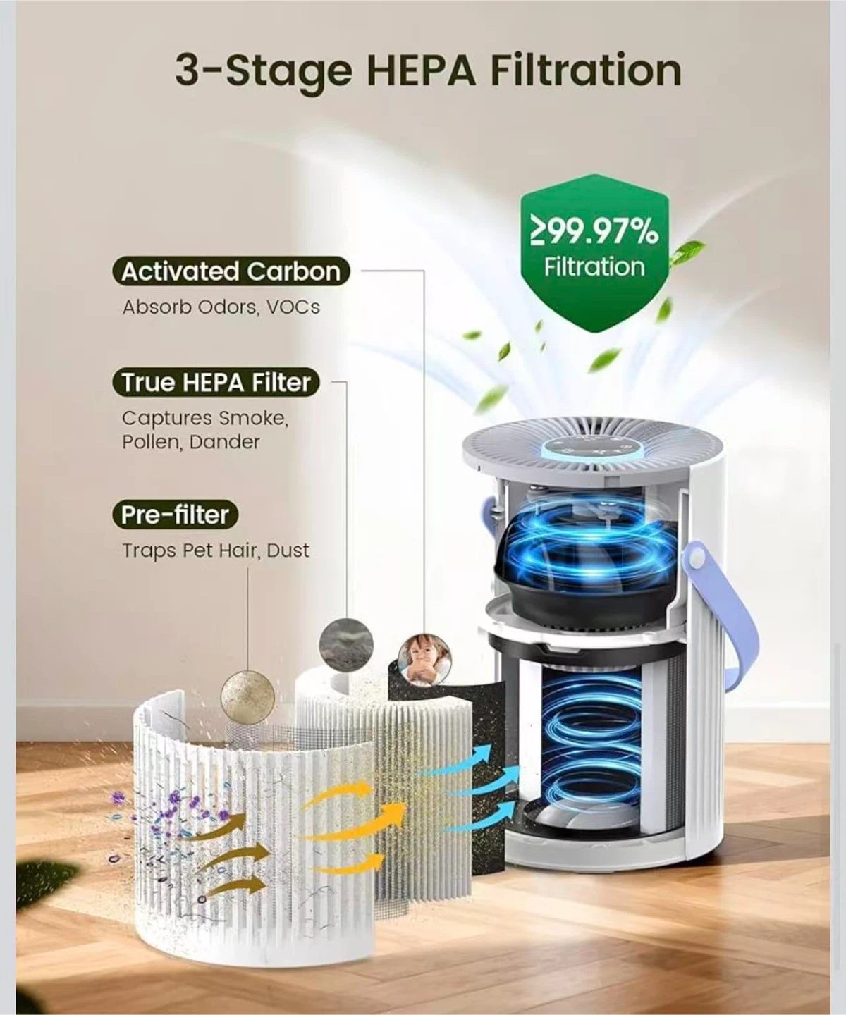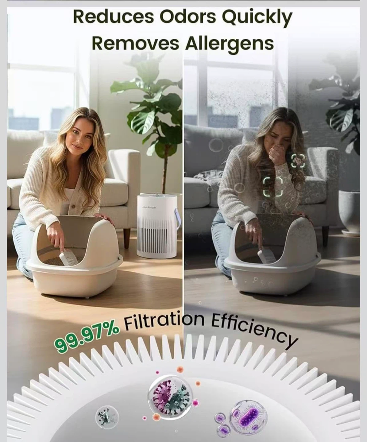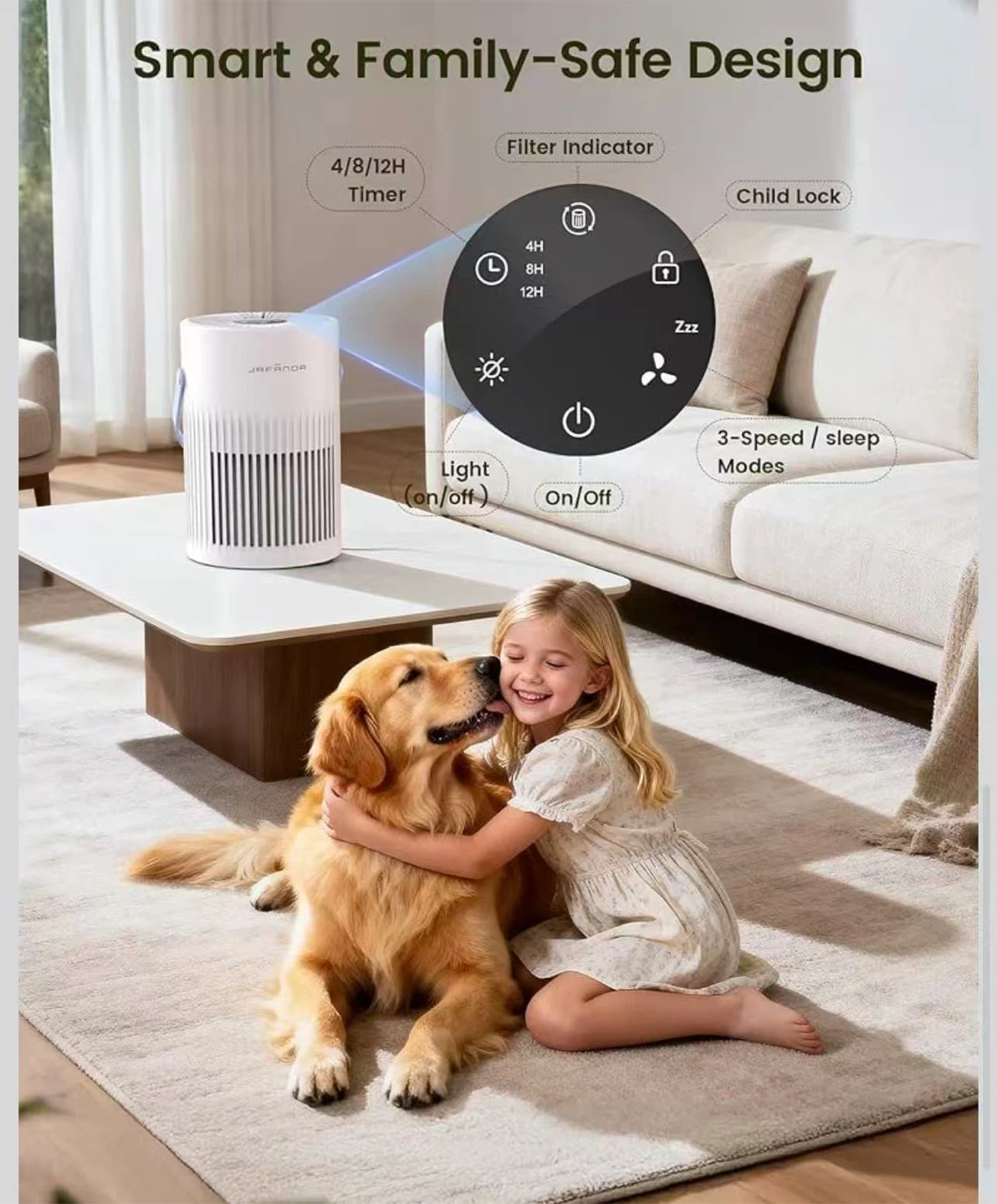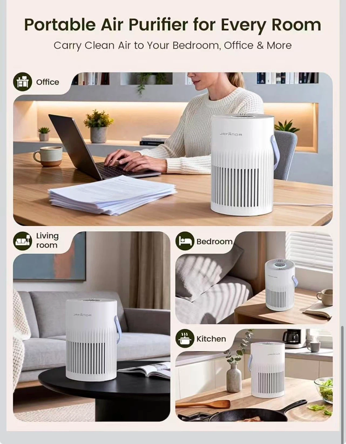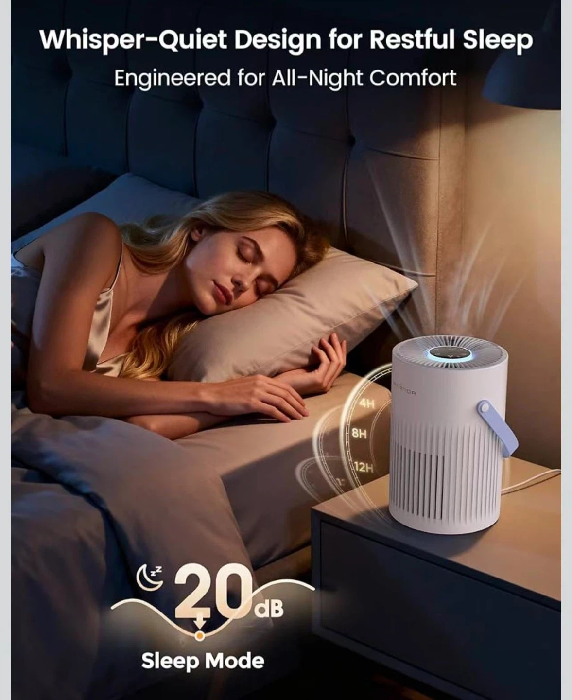 Air Purifers for Home, Hepa Air Purifier for Bedroom, Air Cleaner for Pet Dander, Quiet Sleep Mode, Portable Air Purifier for Office, Odor, Dust, Smoke (White)