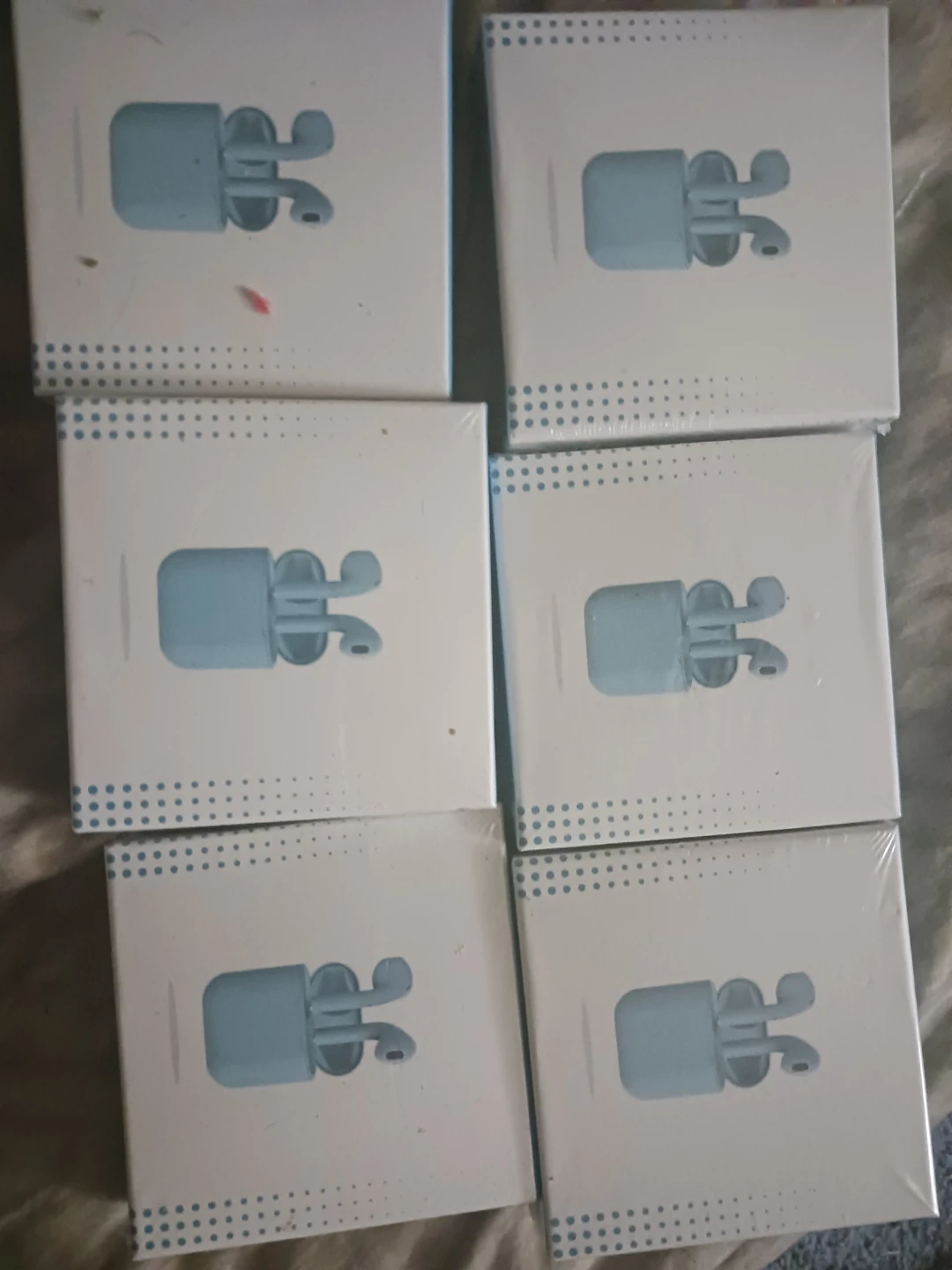 Brand new blue wireless earbuds. Comes with a charging case. These earbuds connect via Bluetooth for untethered listening. Great for everyday use or workouts! I have 7 pairs 1 of them is box damaged so that 1 is $10!