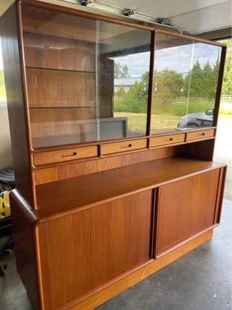 Rare Danish MCM Teak Sideboard & Floating Display Hutch – Kibæk