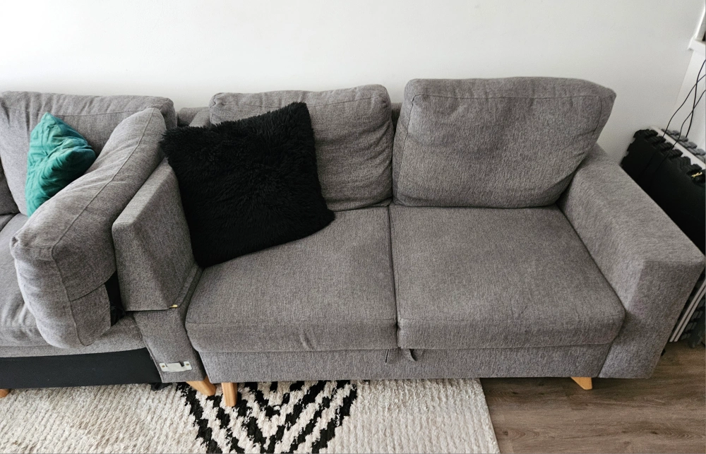 This Grey Sectional 2 piece L Shape Sofa is a great fit for any living space. It features a modular design,it also turns into a Sofa Bed and it has a flexible configuration and comfortable seating for the whole family. It's In Excellent condition, it's ready for a new home!