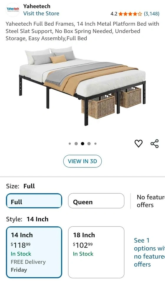 Selling a brand new full-size metal platform bed frame. Still in original packaging with all parts, hardware, and instructions included. Strong, durable steel frame with no box spring needed. Perfect for anyone looking for a clean, modern, and sturdy setup at a great price.