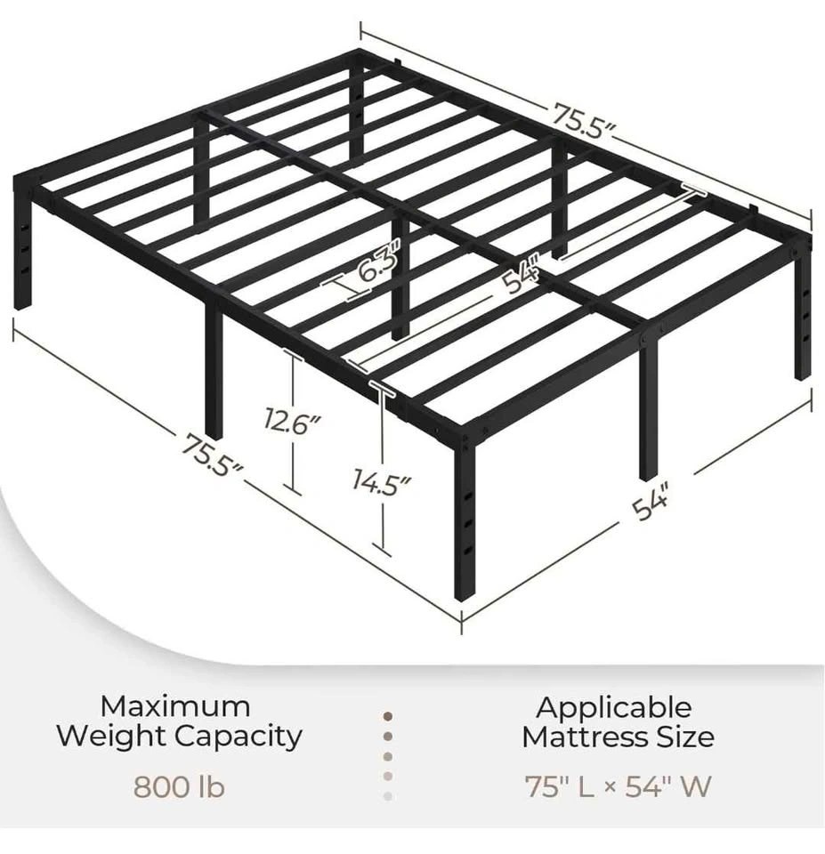 Full Size Metal Bed Frame - 14" Heavy Duty Platform