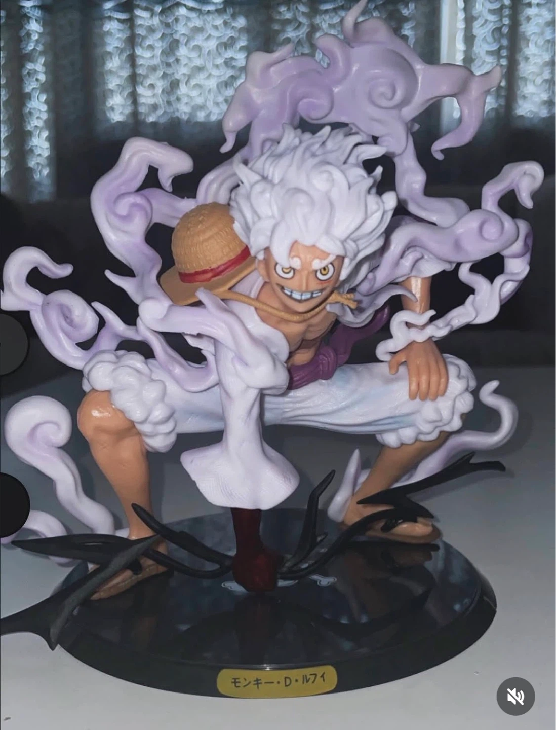 This figure depicts Monkey D. Luffy from One Piece in his Gear 5 form. It features translucent purple smoke effects and a straw hat.