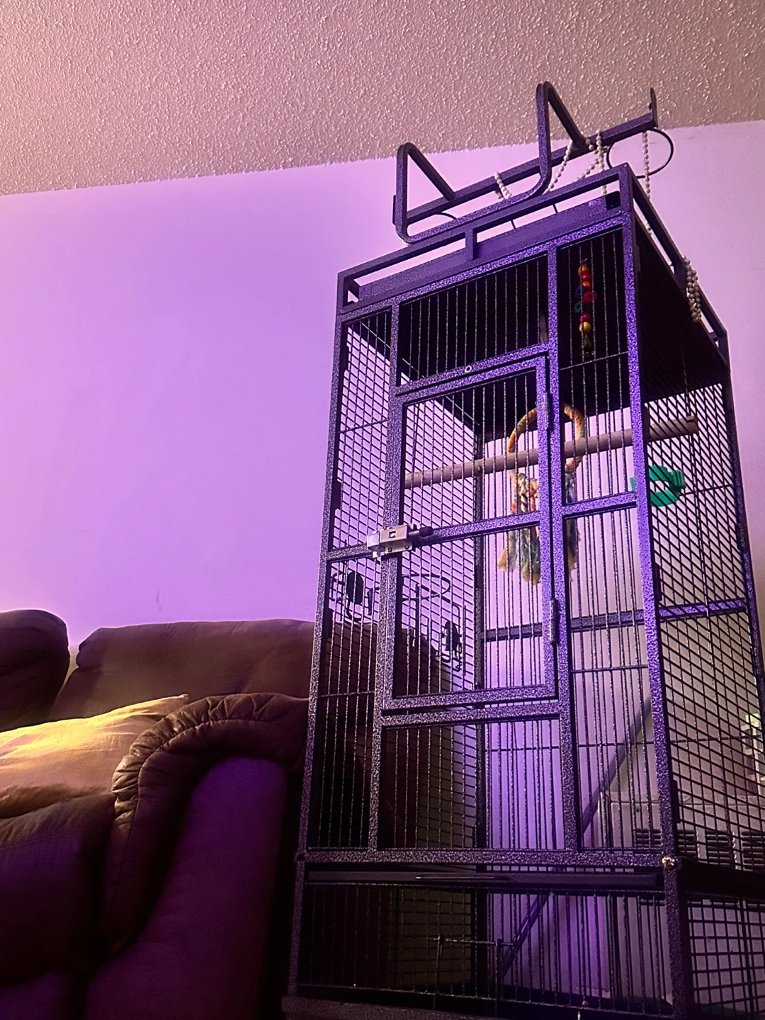 This is a large, tall bird cage