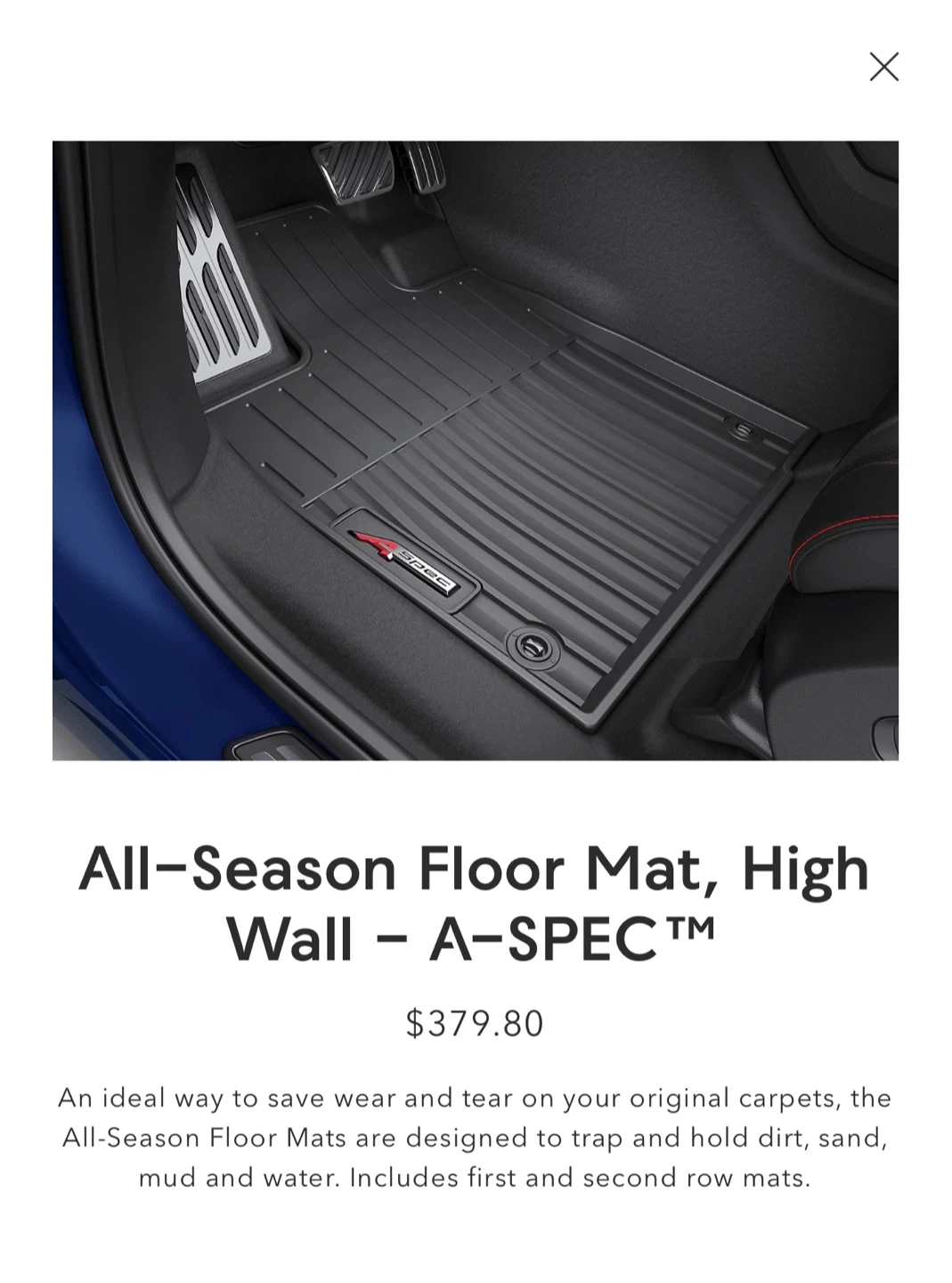 Selling Acura Genuine accessories A-SPEC all-season(all-weather) floor mats for 1st row, 2nd row, and 3rd row of 2022-2026 Acura MDX A-SPEC. These will fit any 2022-2026 MDX trims.