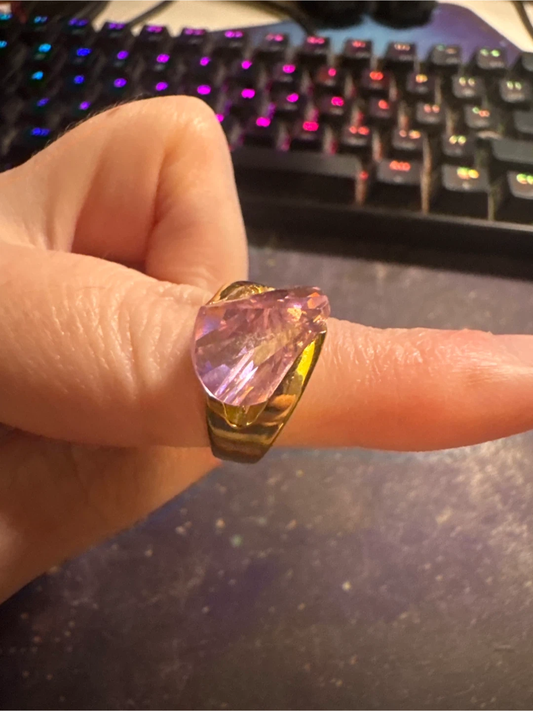 Selling a vintage gold ring featuring a lovely pink stone. It's a unique piece that would make a great addition to any jewelry collection. Feel free to message me with any questions!