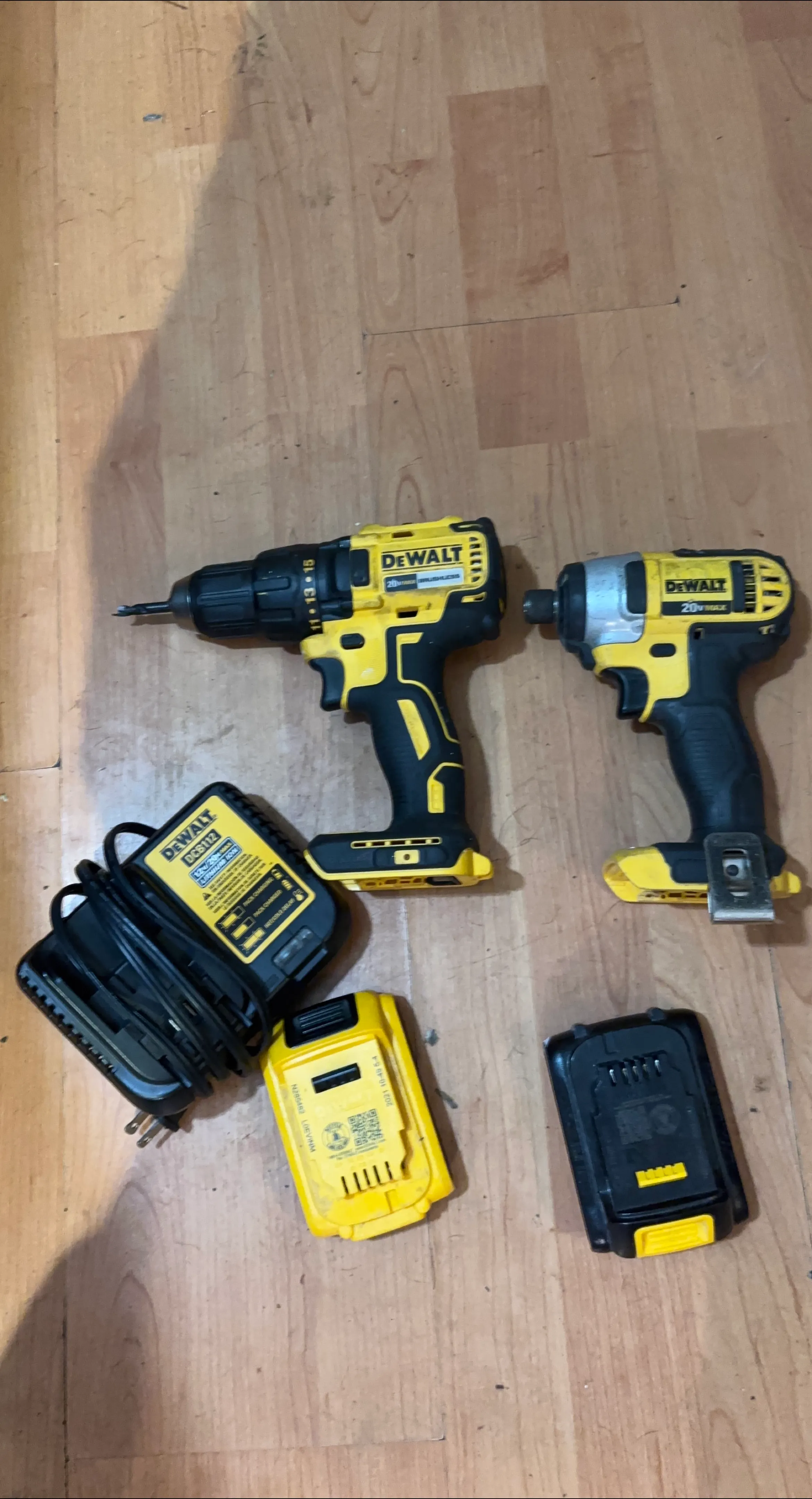 Selling a DeWalt 20V MAX cordless drill and impact driver set! Includes the drill, impact driver, charger, and two batteries. A great set for any DIY projects around the house!