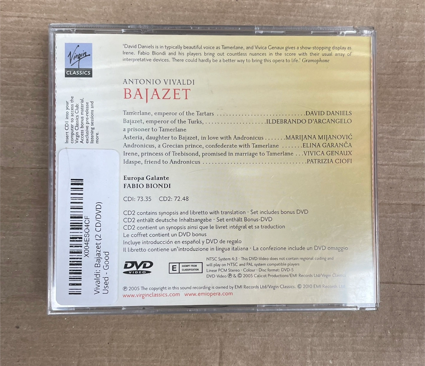 Selling a Vivaldi Bajazet CD set. It includes 2 CDs with synopsis and libretto, plus a bonus DVD. Enjoy this opera at home!