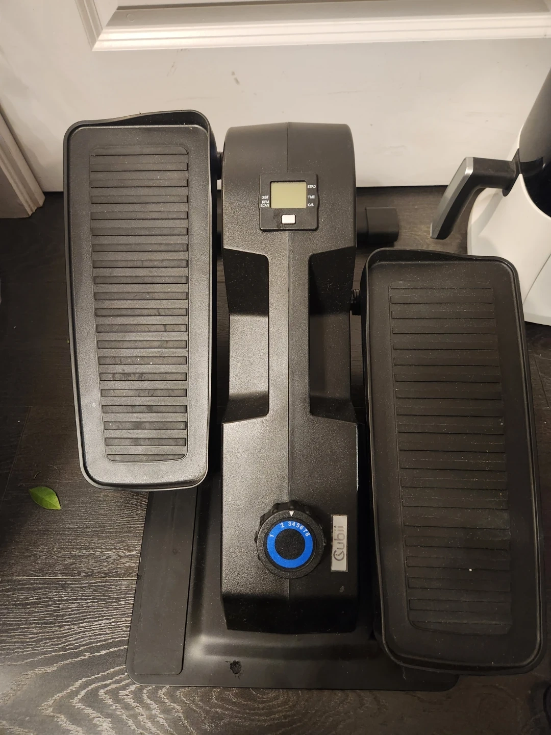 This is a compact elliptical stepper. It has adjustable resistance for your workout. The digital display tracks distance, RPM, time, and calories.