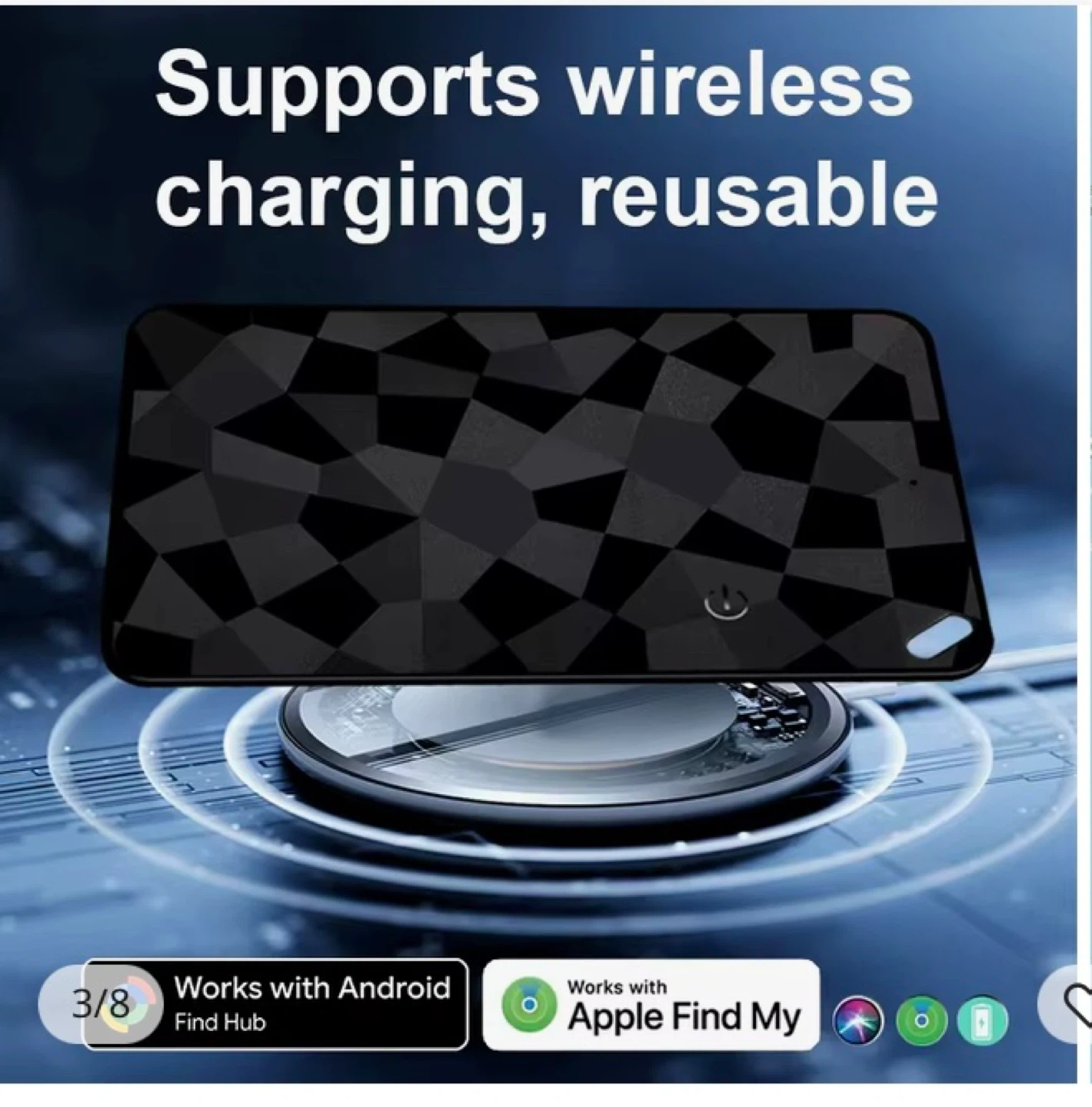This Smart Card is compatible with both Apple Find My and Android Find Hub. It's designed to fit easily into your wallet. A user manual and a strap are included.