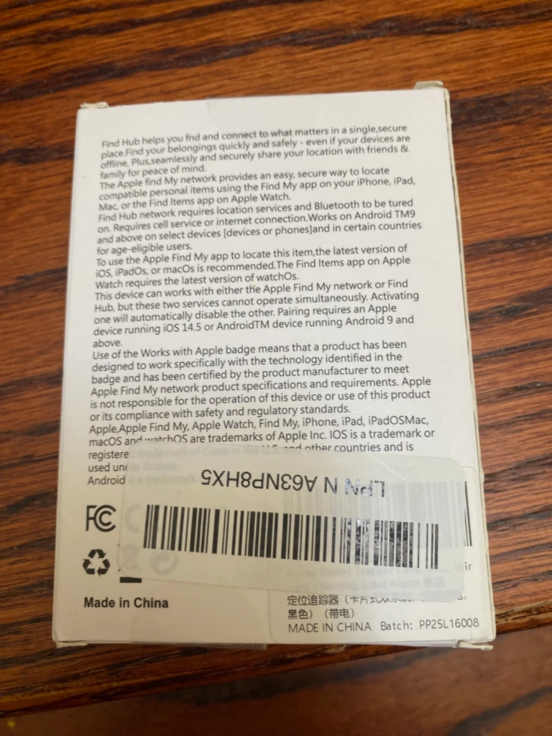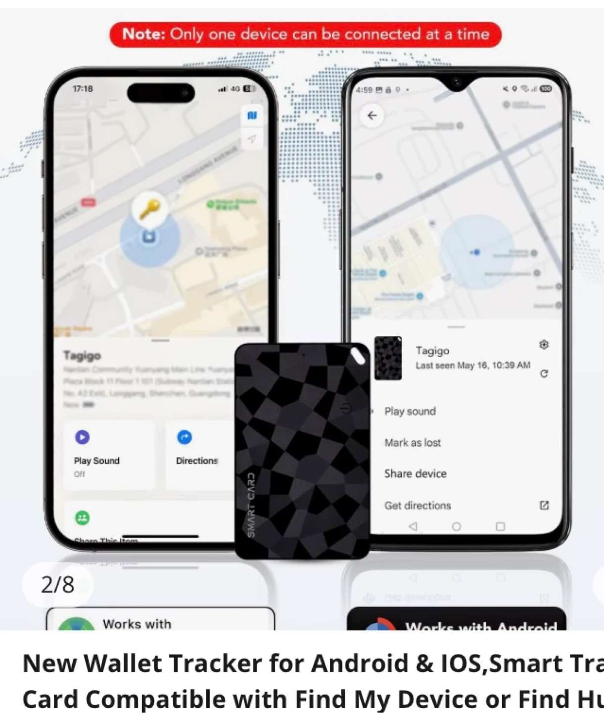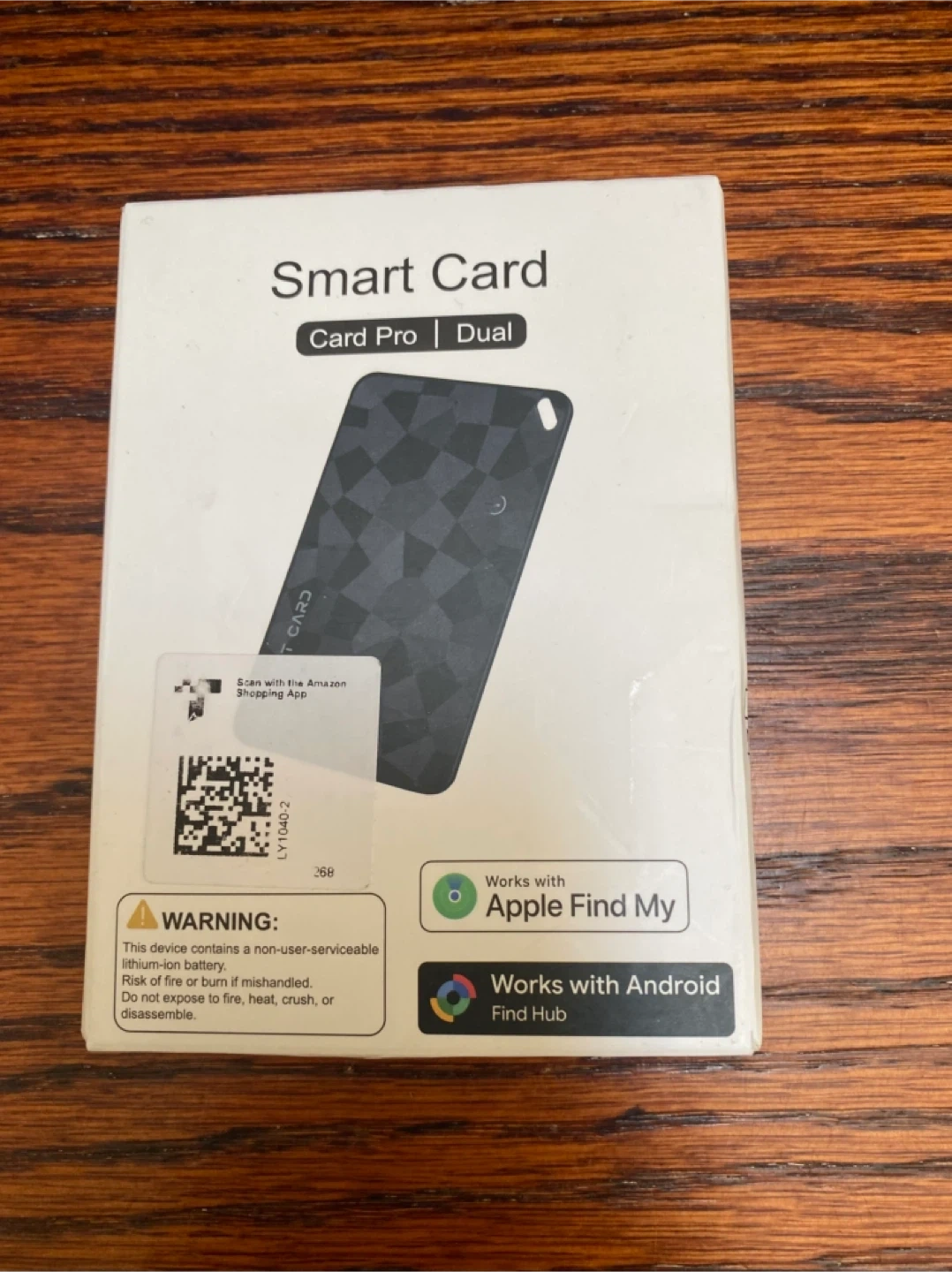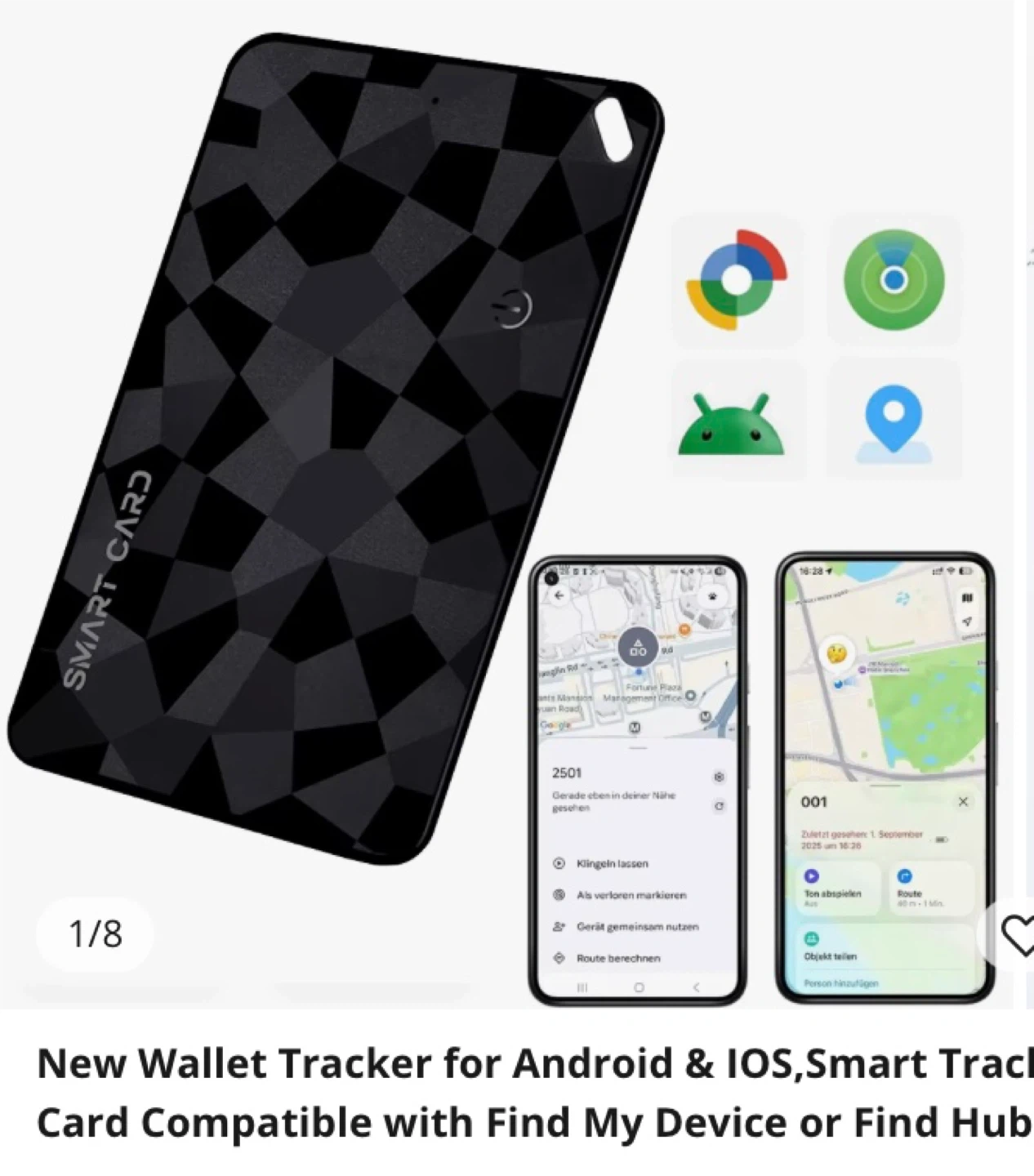 This Smart Card is compatible with both Apple Find My and Android Find Hub. It's designed to fit easily into your wallet. A user manual and a strap are included.