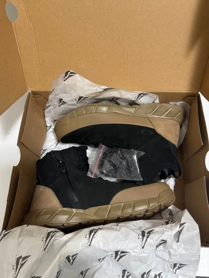 New Oakley boots for men. These water-repellant boots are black with tan soles. They fit more like a 9 or 9.5. Super durable and stylish, great for outdoor adventures or just everyday wear. Pick up only. Location: close to Brampton Gateway Terminal and Shoppers World Mall Brampton. Address will be provided when pick up time is scheduled and agreed. Cash only.