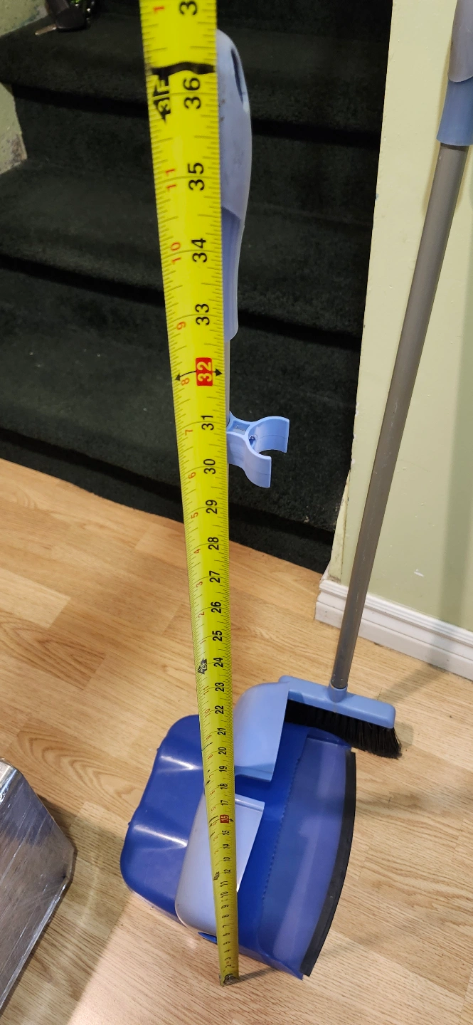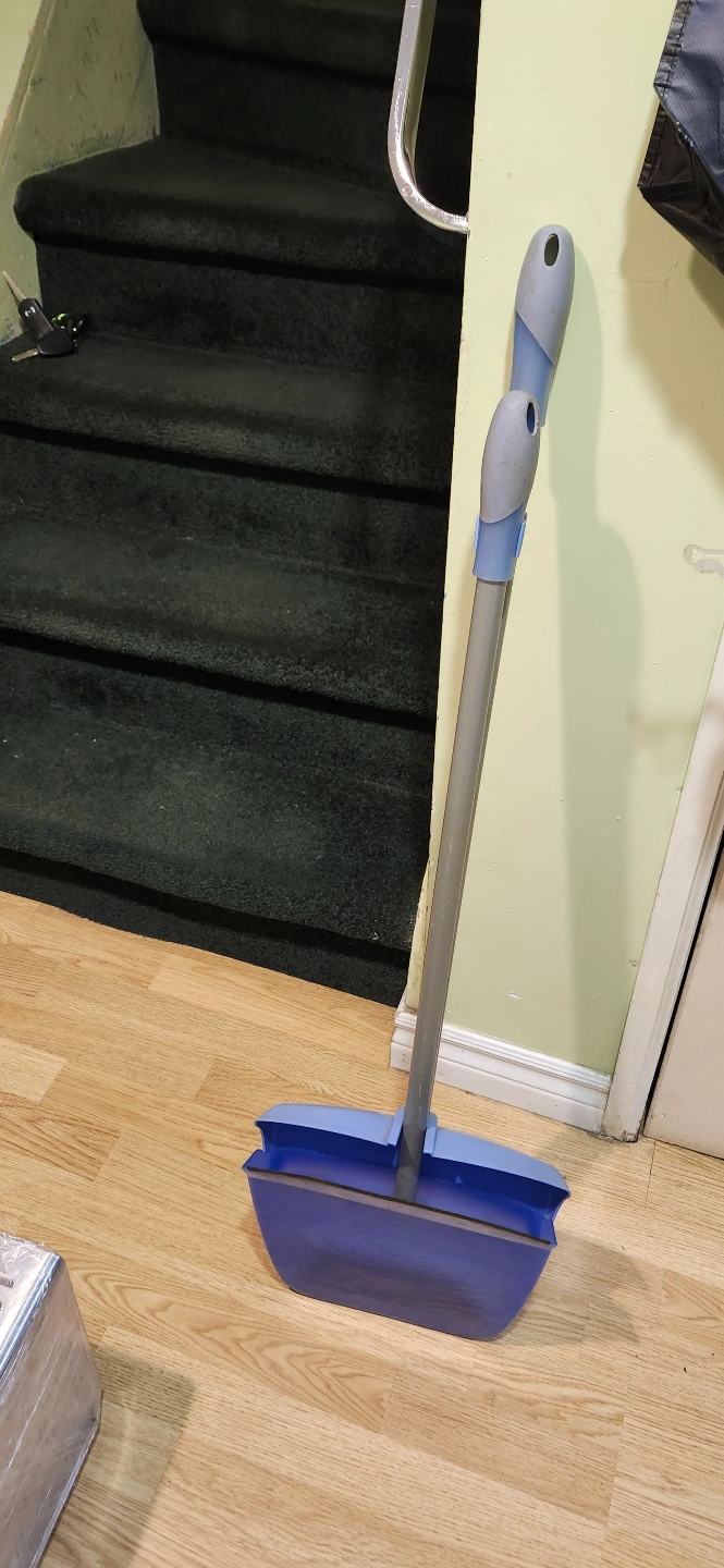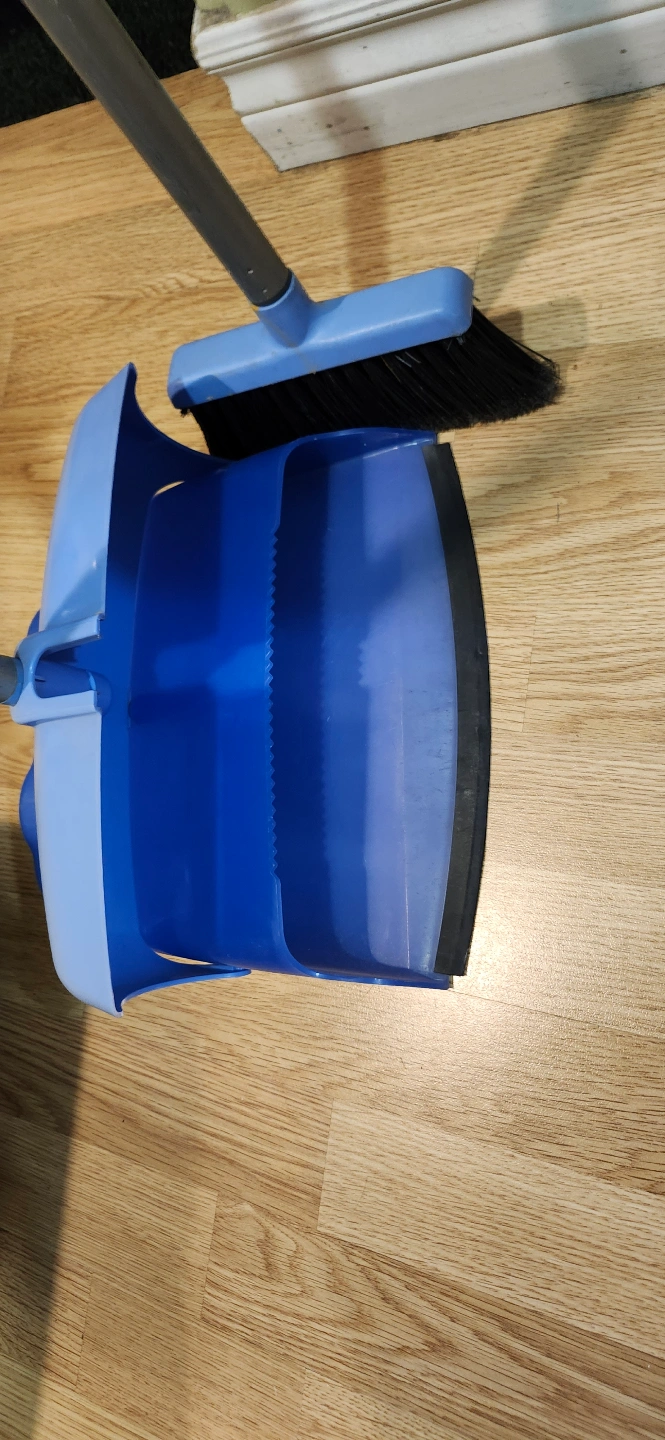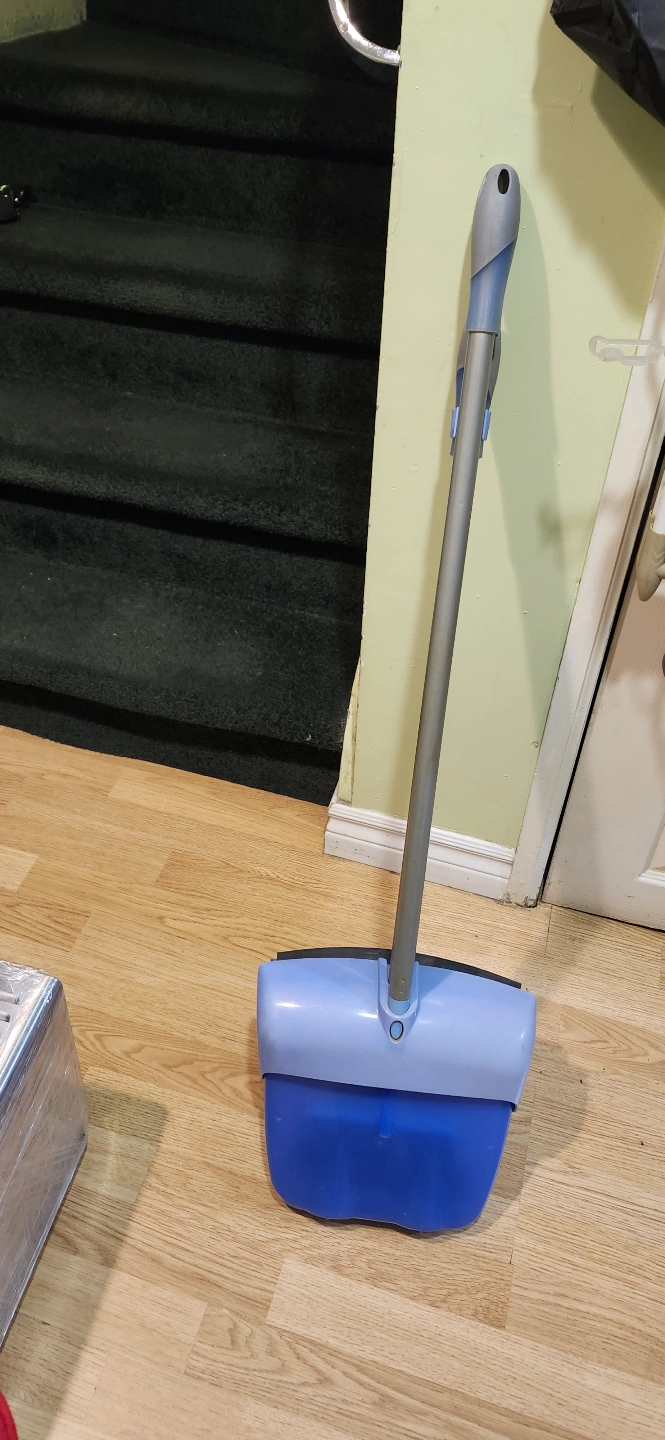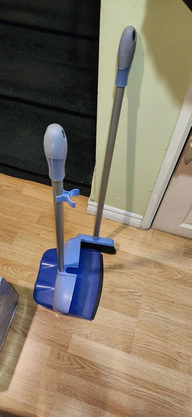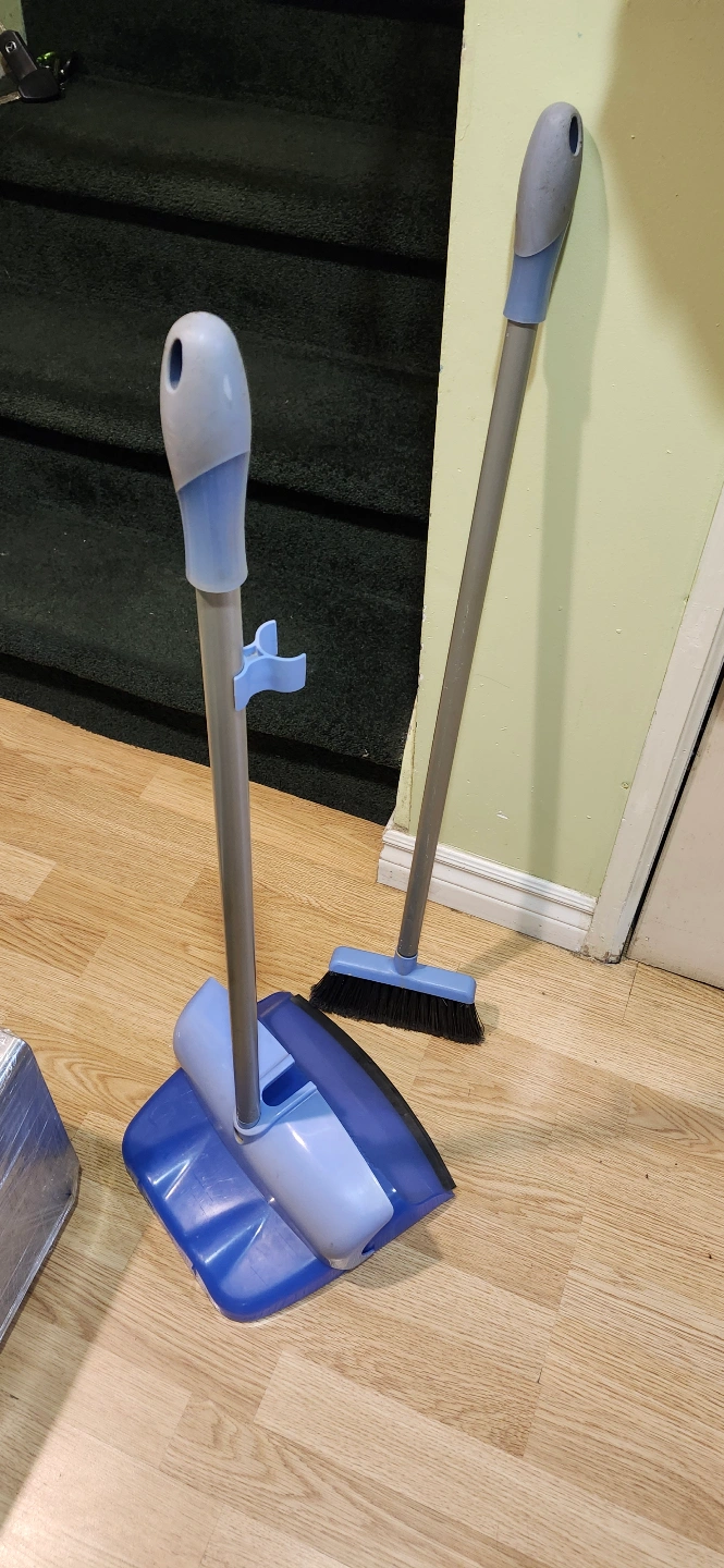 Excellent condition. Blue dustpan and broom set. Long handles. Good for quick cleanups. price only cash only pickup no delivery. 801 O'Connor drive outside TD Canada Trust bank door.