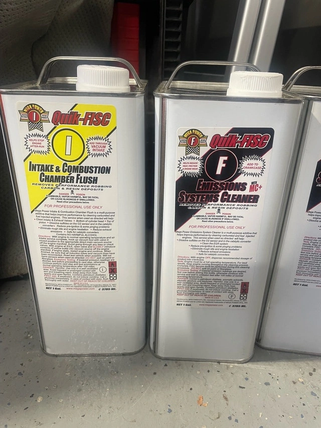 New, unopened set of four Quik-Fisc engine cleaners. Includes two cans of Intake and Combustion Chamber Flush, and two cans of Emissions MC+ Systems Cleaner. Ready to give your engine a good cleaning. Price firm.