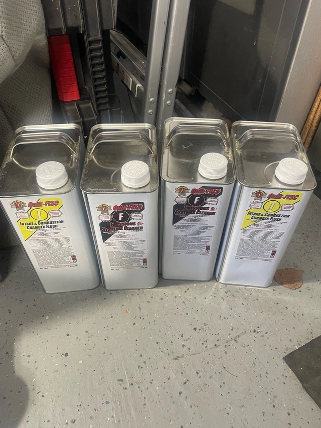 New, unopened set of four Quik-Fisc engine cleaners. Includes two cans of Intake and Combustion Chamber Flush, and two cans of Emissions MC+ Systems Cleaner. Ready to give your engine a good cleaning. Price firm.