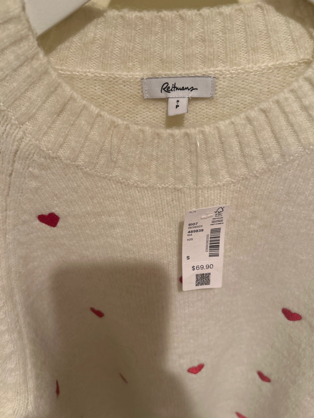 valentine’s gift- Reitmans Heart embroidered Sweater Size S