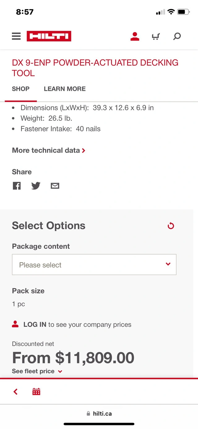 Digitally enabled, fully automatic, high-productivity, stand-up powder-actuated nailer for fastening metal decks Dimensions (LxWxH): 39.3 x 12.6 x 6.9 in Weight: 26.5 lb Fastener Intake: 40 nails Features Revolutionary design – upright working position for high speed of use and long-term user comfort Ergonomically designed handle to enhance user comfort Adjustable power regulator – precise control for more reliable fastenings Easy to clean and maintain on jobsites Use-on-demand service tailored to meet your project needs Applications Fastening metal roof decks to steel structures with a minimum thickness of 6 mm (1/4") with X-ENP metal sheet nails for roofing Fastening metal floor decks to steel structures with a minimum thickness of 6 mm (1/4") with X-ENP metal sheet nails for flooring Condition: New For Sale By: Owner