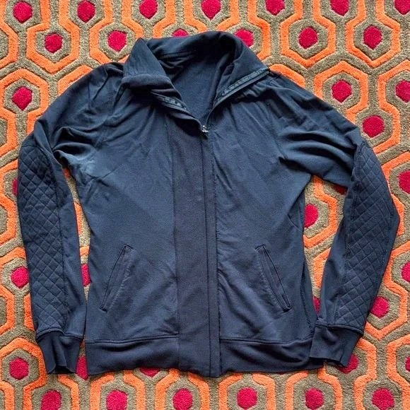 Garment was washed. There are signs of use/wear, including deodorant stains. Logo is also deteriorating. Pick up at Yonge & Sheppard.