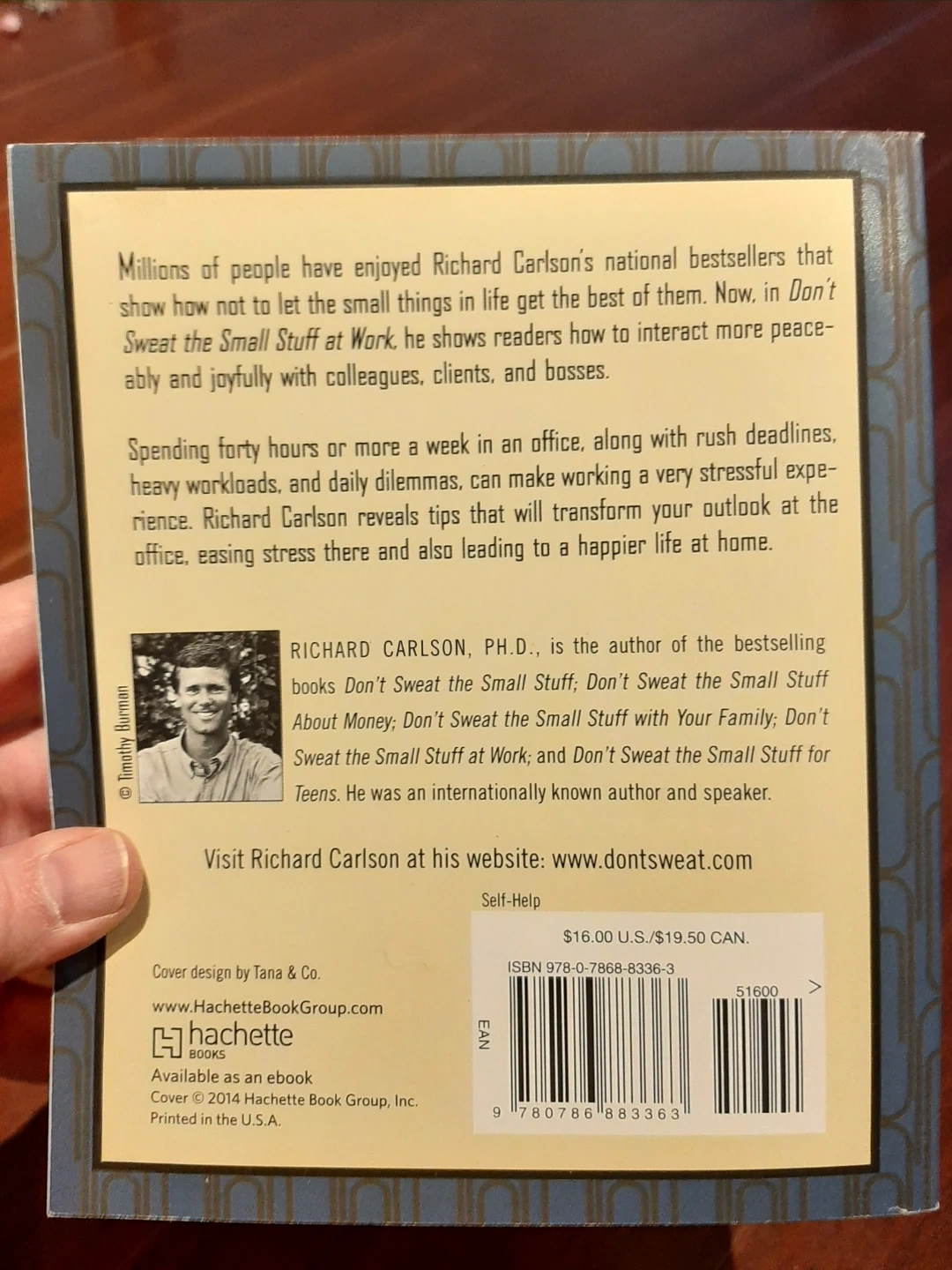 Selling a new "Don't Sweat the Small Stuff at Work" book by Richard Carlson, Ph.D. It's a self-help book that offers simple ways to minimize stress and conflict while bringing out the best in yourself and others. Originally priced at $19.50 CAN. Excellent condition.